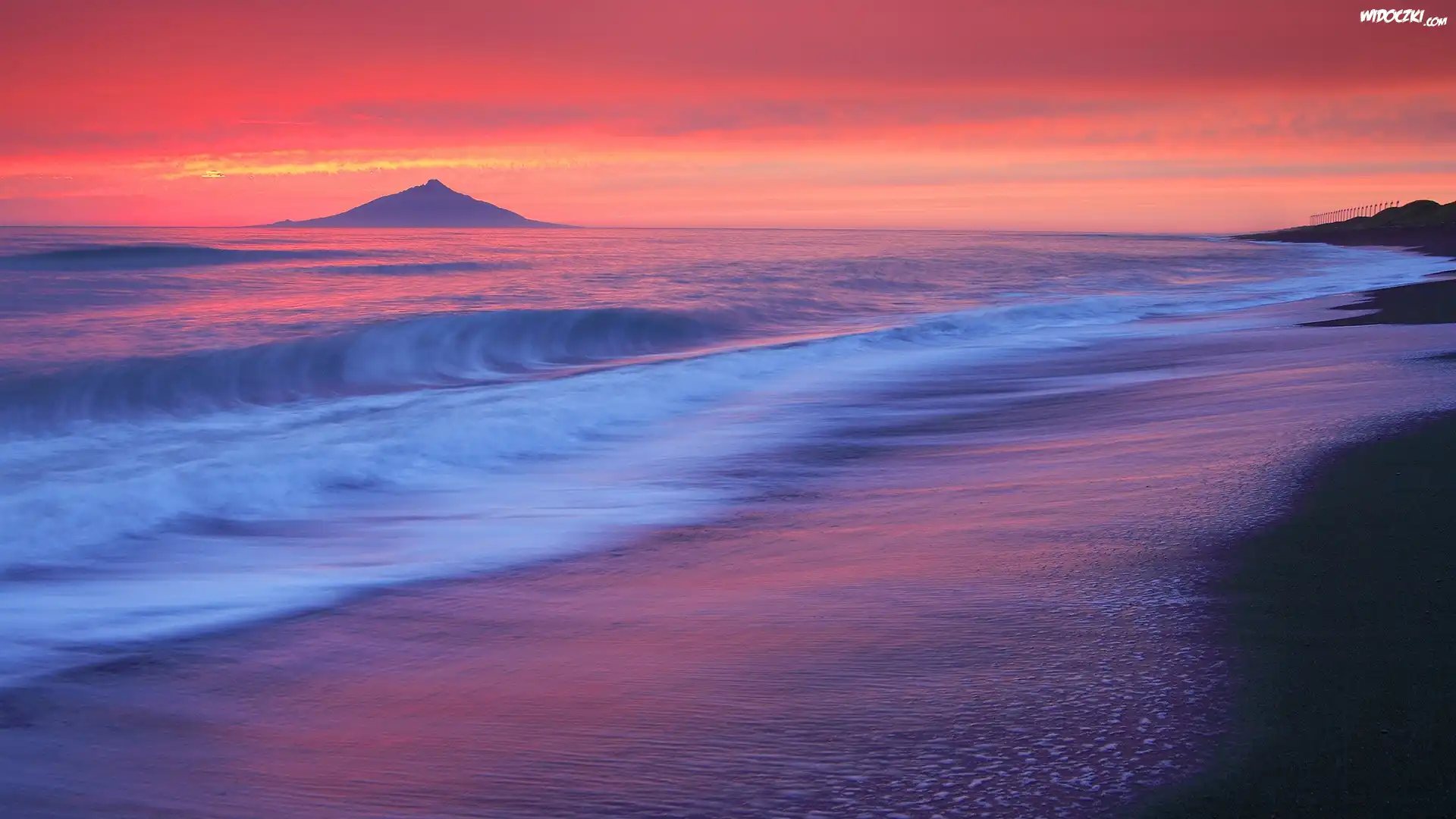 Zdjęcia, Morze, Fale, Zachód, Słońca