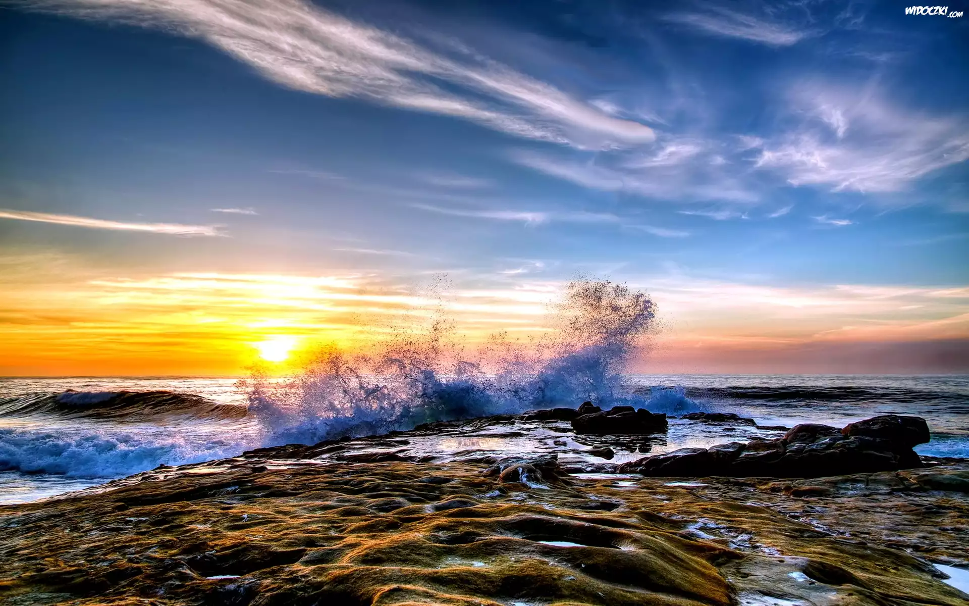 Zdjęcia, Morze, Fale, Zachód, Słońca