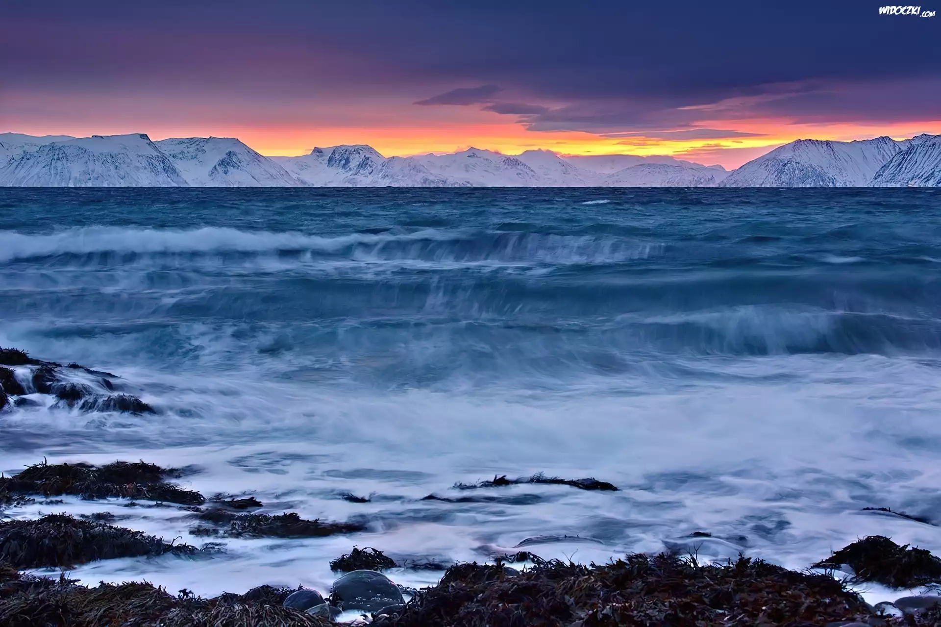 Zdjęcia, Morze, Góry, Zachód, Słońca