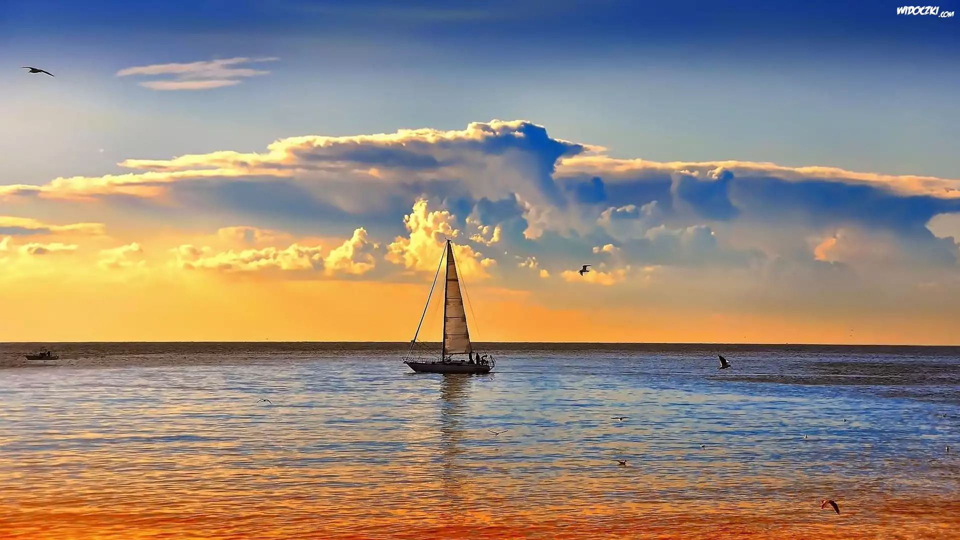 Morze, Jacht, Zachód, Słońca