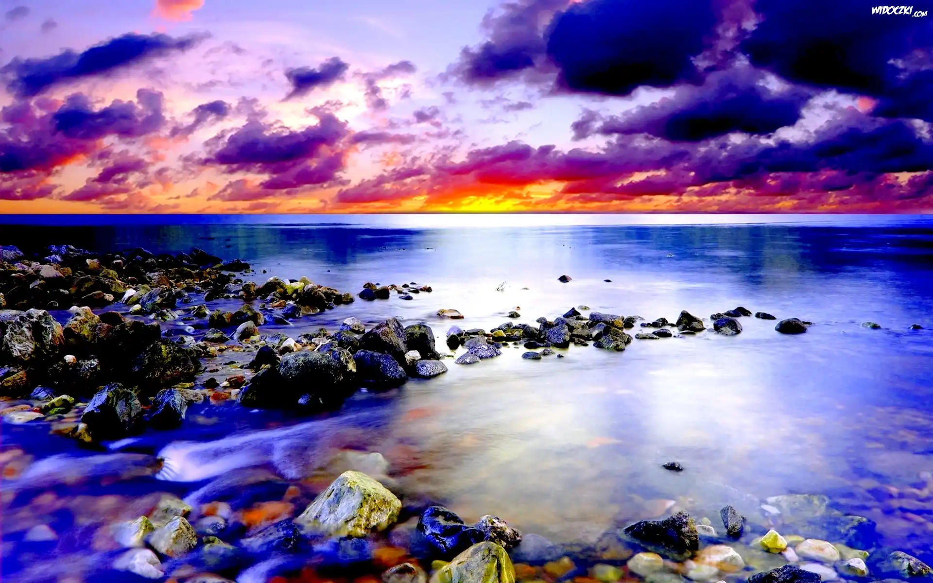 Zdjęcia, Morze, Brzeg, Kamienie, Zachód, Słońca