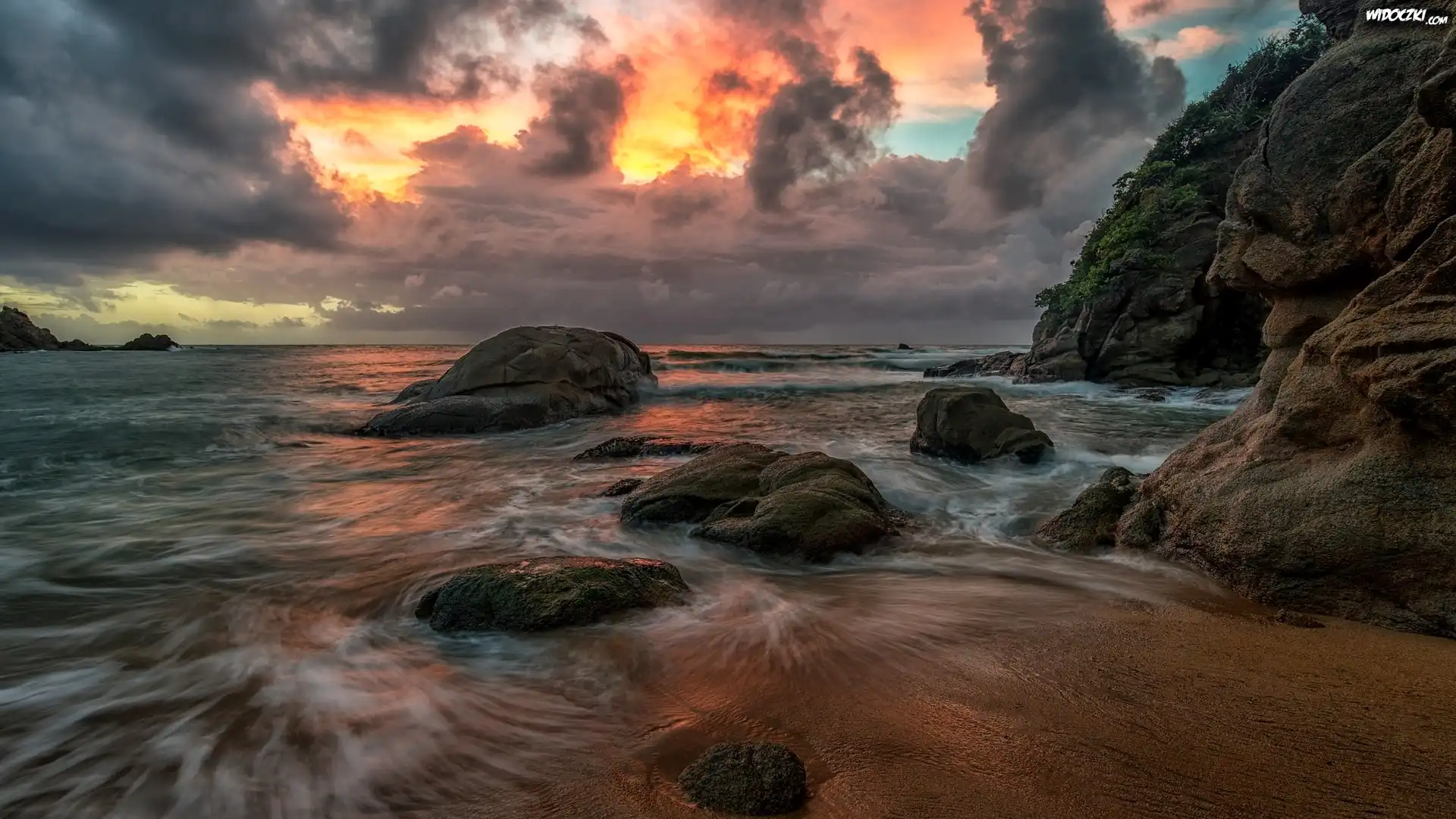 Zdjęcia, Morze, Skały, Kamienie, Zachód słońca