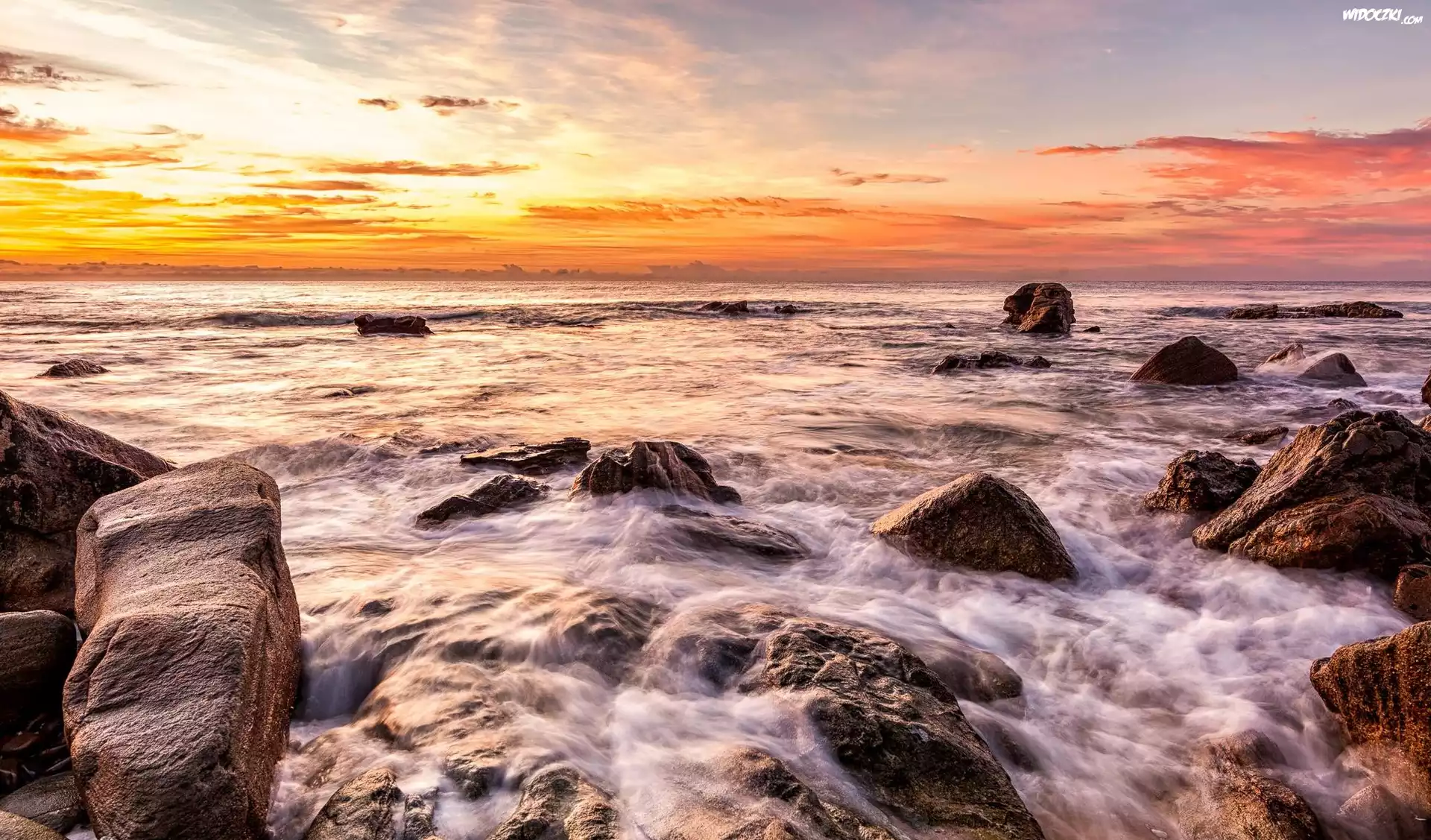 Zdjęcia, Morze, Skały, Kamienie, Zachód słońca