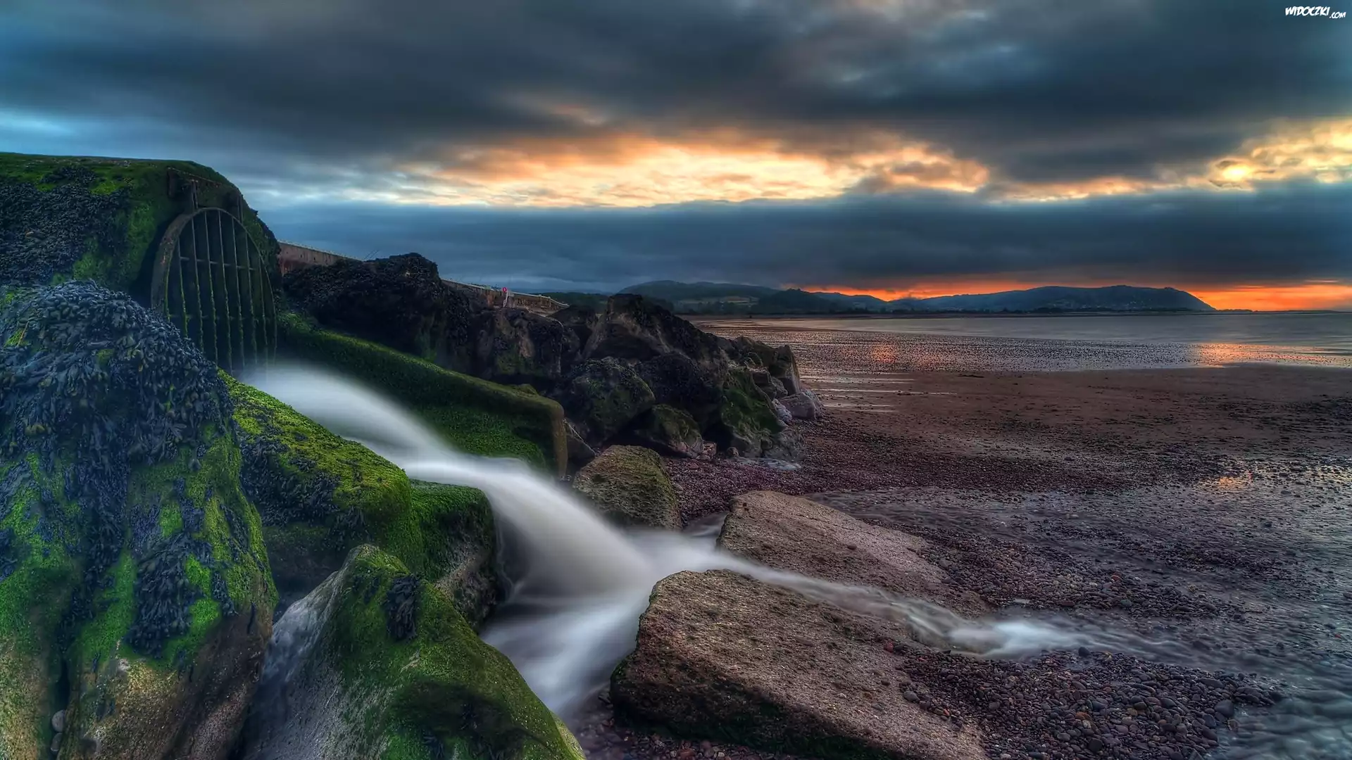 Zdjęcia, Morze, Kamienie, Zachód, Słońca