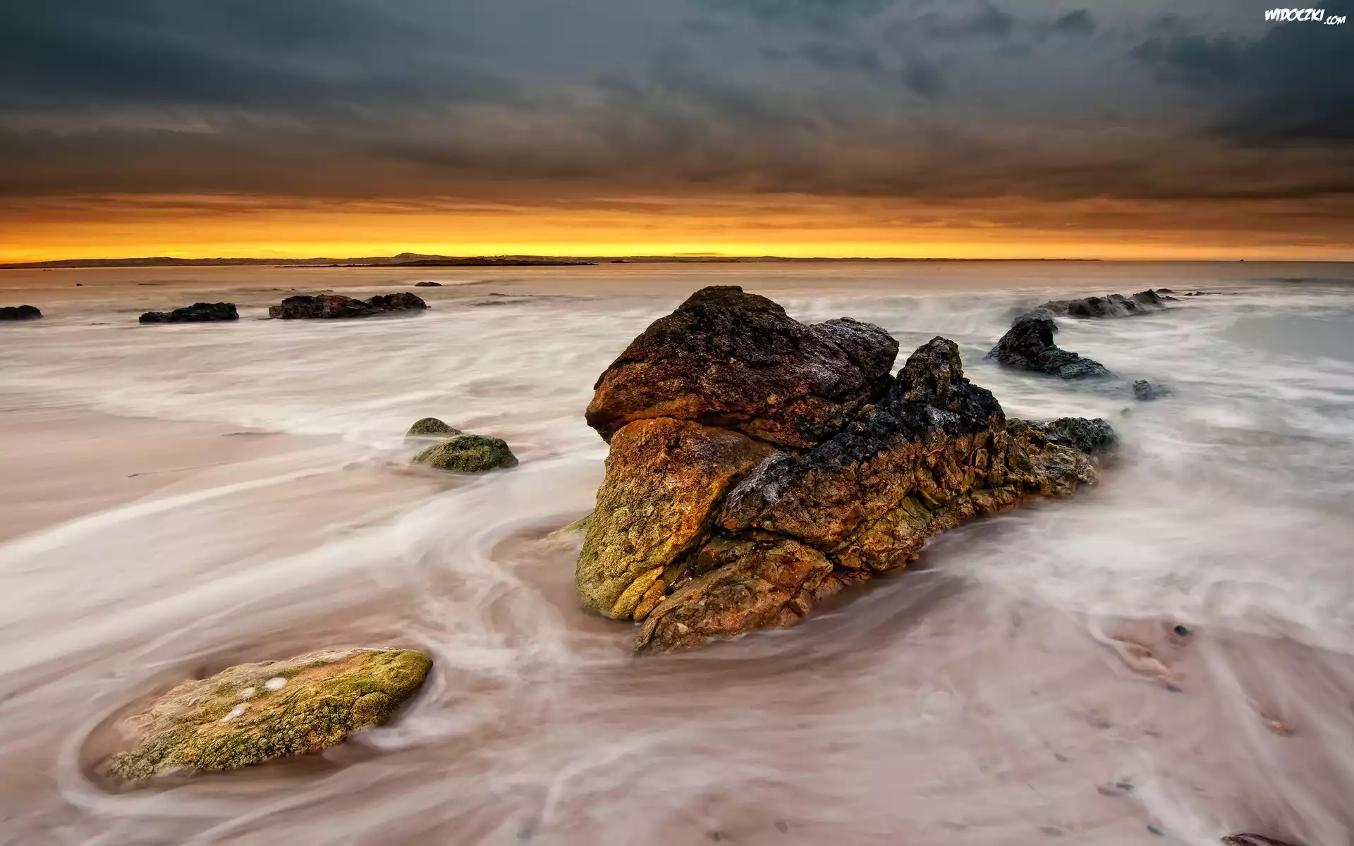 Zdjęcia, Morze, Kamienie, Zachód, Słońca