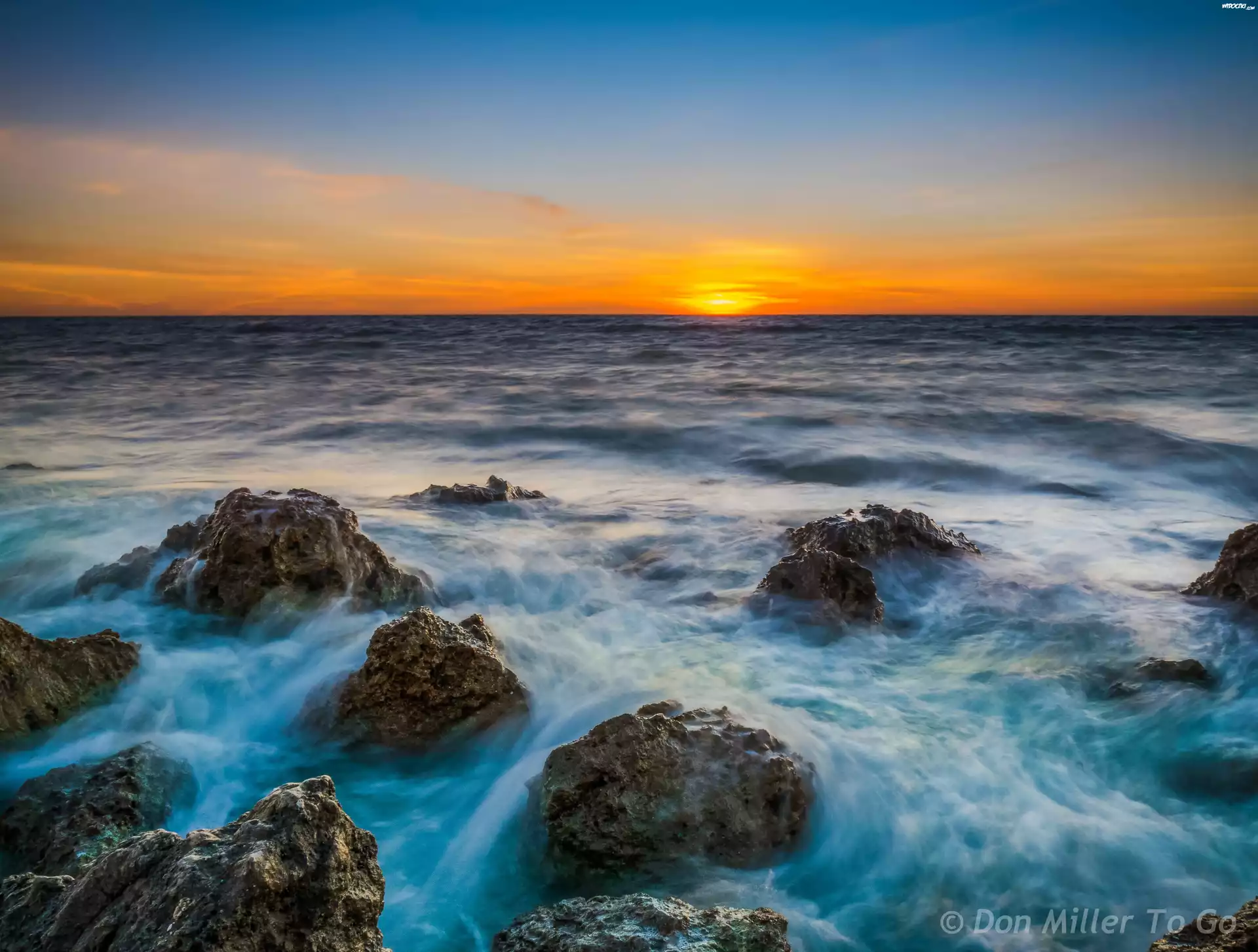 Zdjęcia, Morze, Kamienie, Zachód słońca