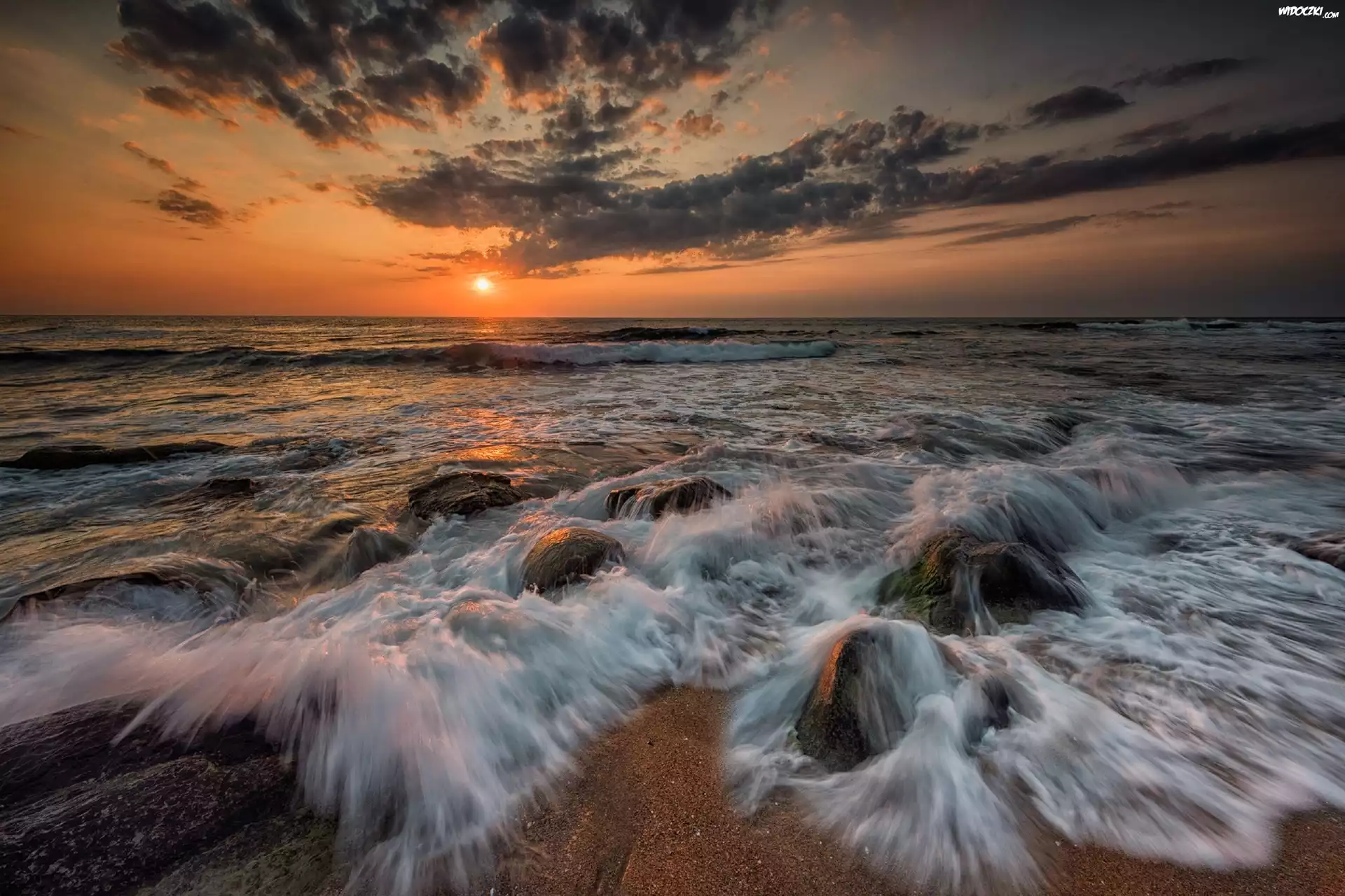 Zdjęcia, Morze, Kamienie, Zachód, Słońca