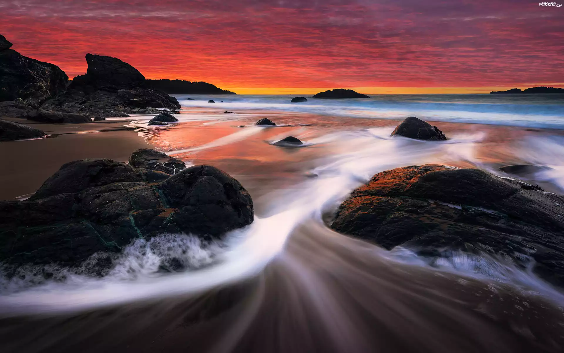 Zdjęcia, Morze, Kamienie, Zachód, Słońca