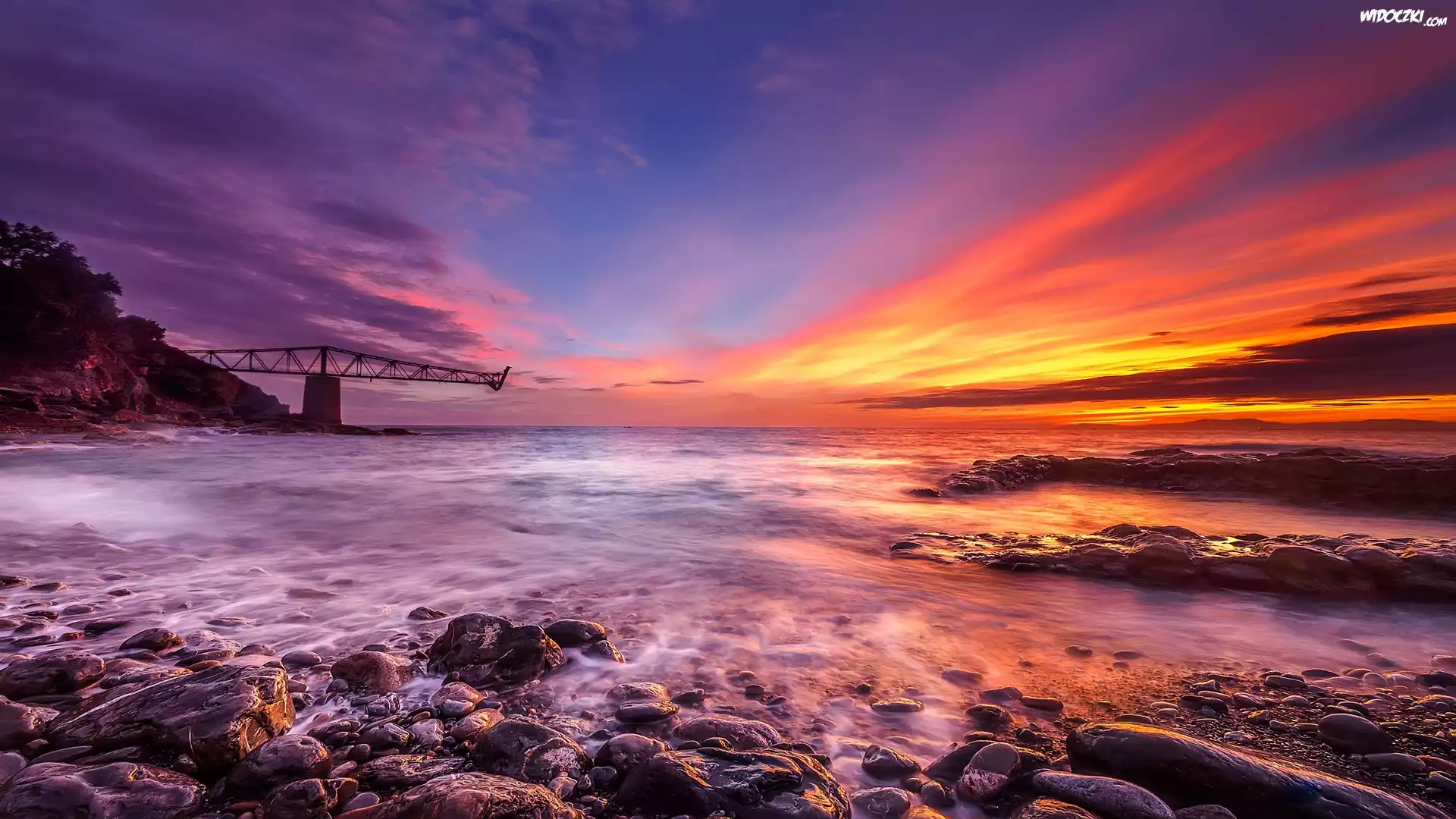 Zdjęcia, Morze, Wybrzeże, Kamienie, Zachód słońca