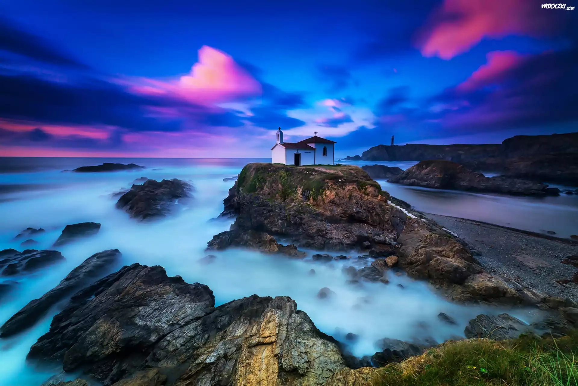 Zdjęcia, Morze, Skały, Kaplica, Zachód, Słońca