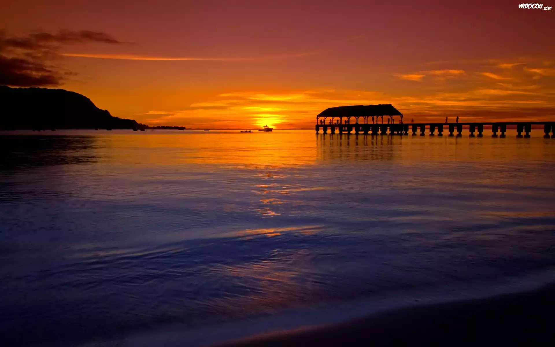Zdjęcia, Morze, Molo, Zachód, Słońca