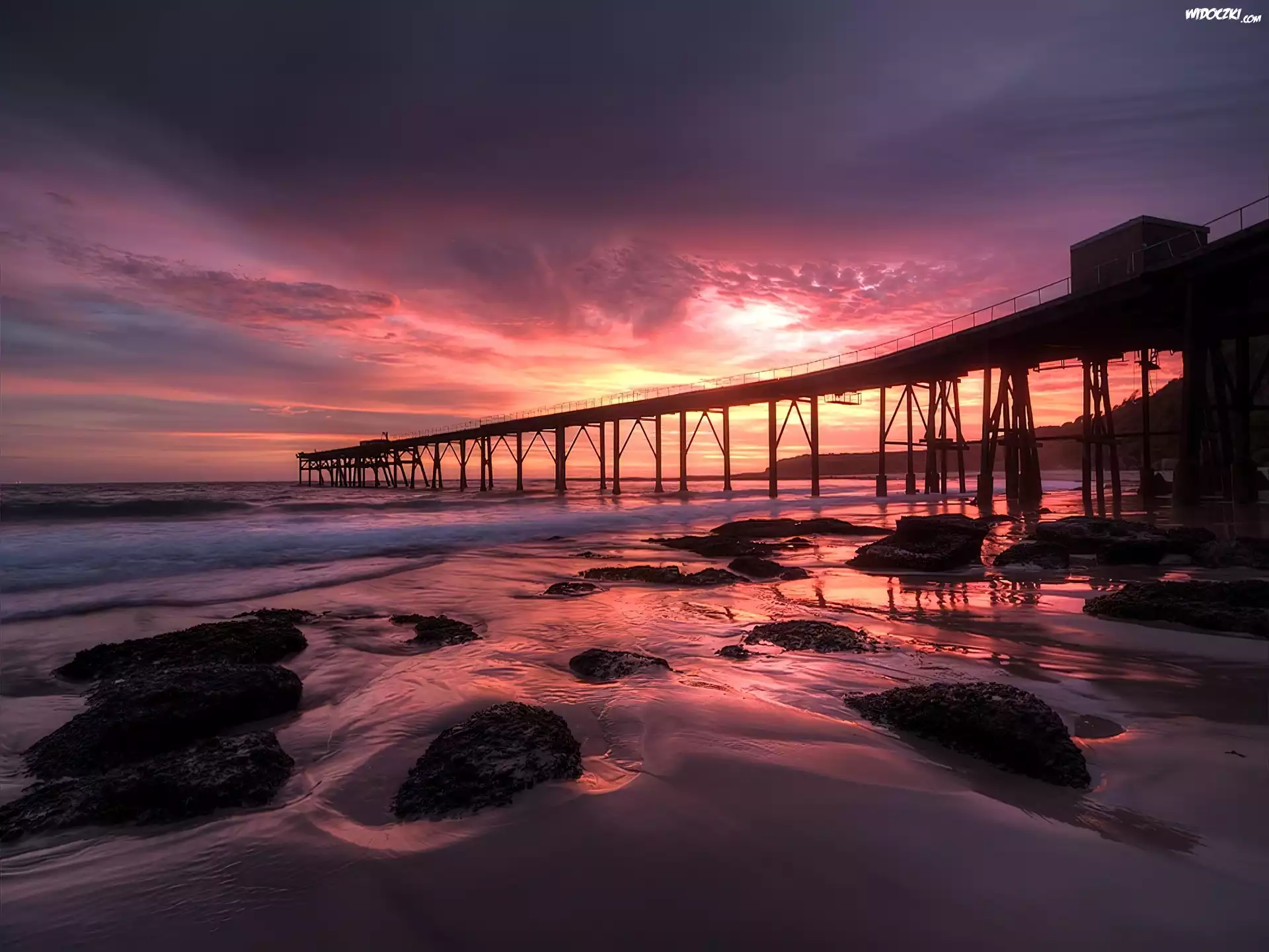 Zdjęcia, Morze, Molo, Zachód, Słońca