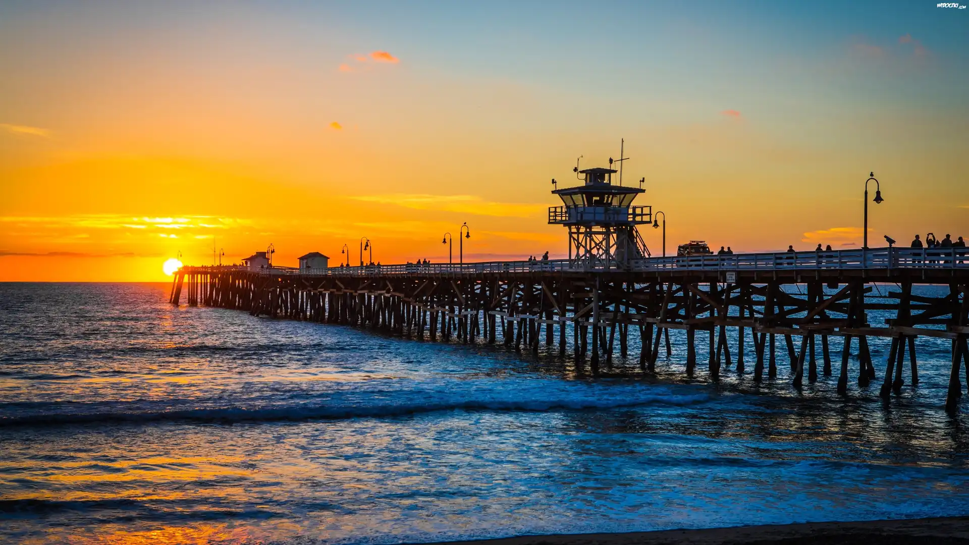 Zdjęcia, Morze, Molo, Zachód, Słońca