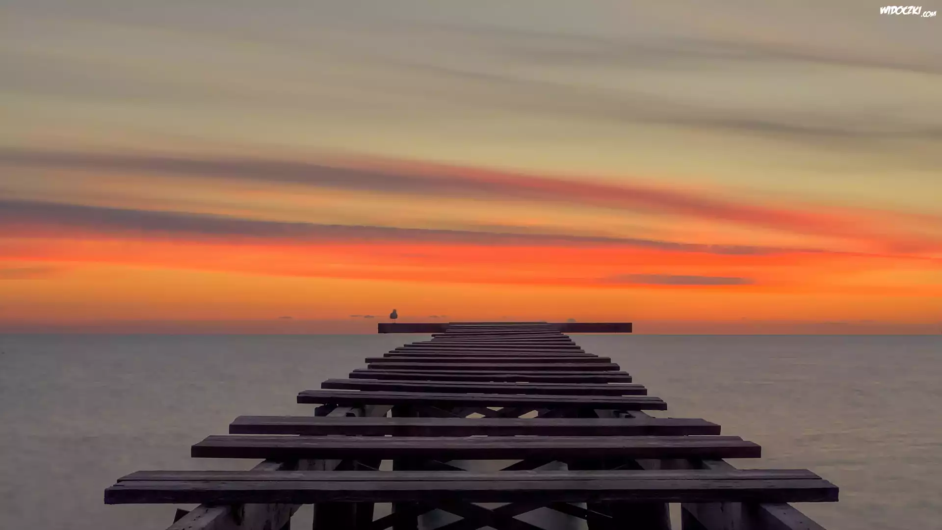Zdjęcia, Morze, Molo, Zachód, Słońca