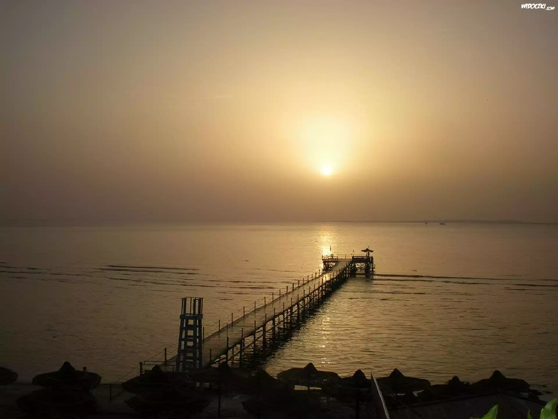 Zdjęcia, Morze, Most, Zachód, Słońca