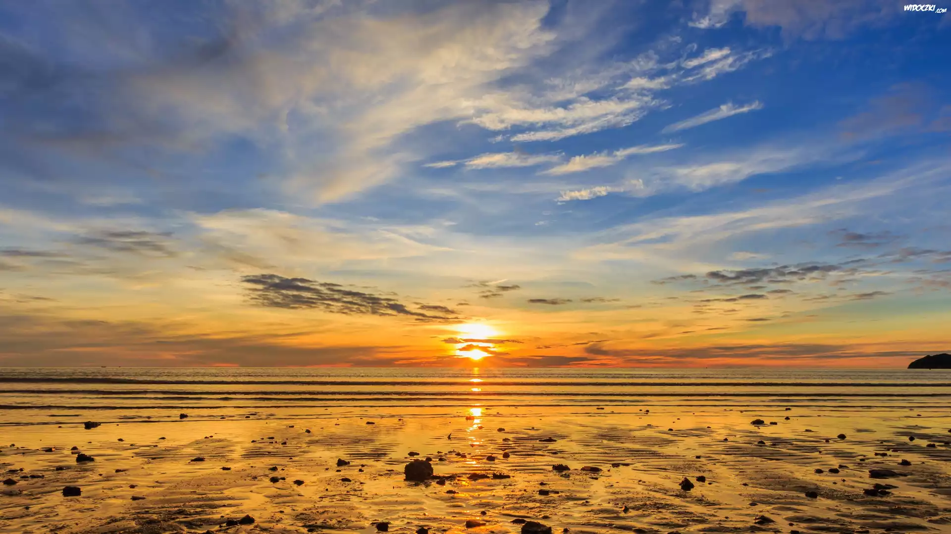 Zdjęcia, Morze, Plaża, Niebo, Chmury, Zachód słońca