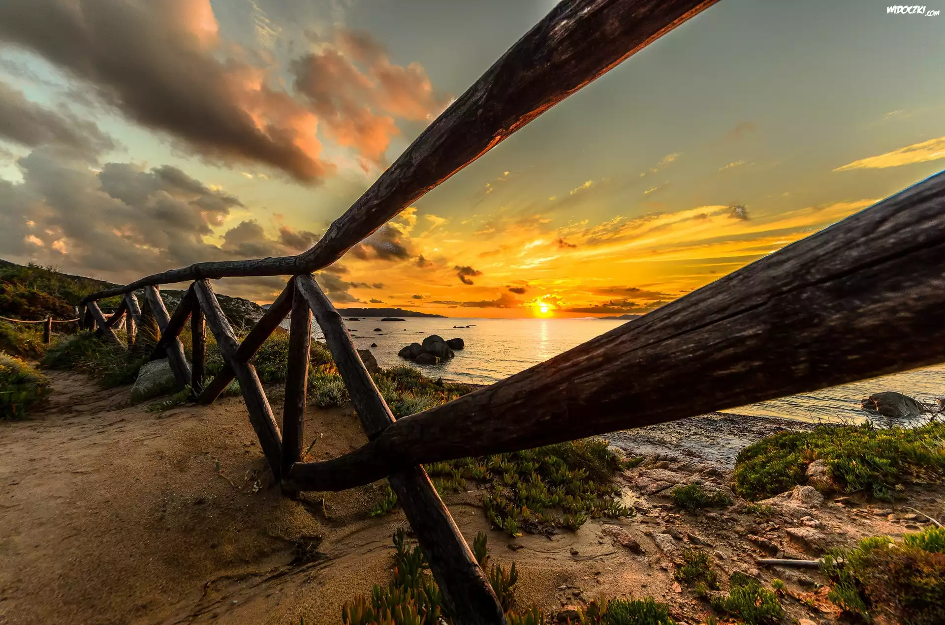 Zdjęcia, Morze, Plaża, Ogrodzenie, Zachód Słońca