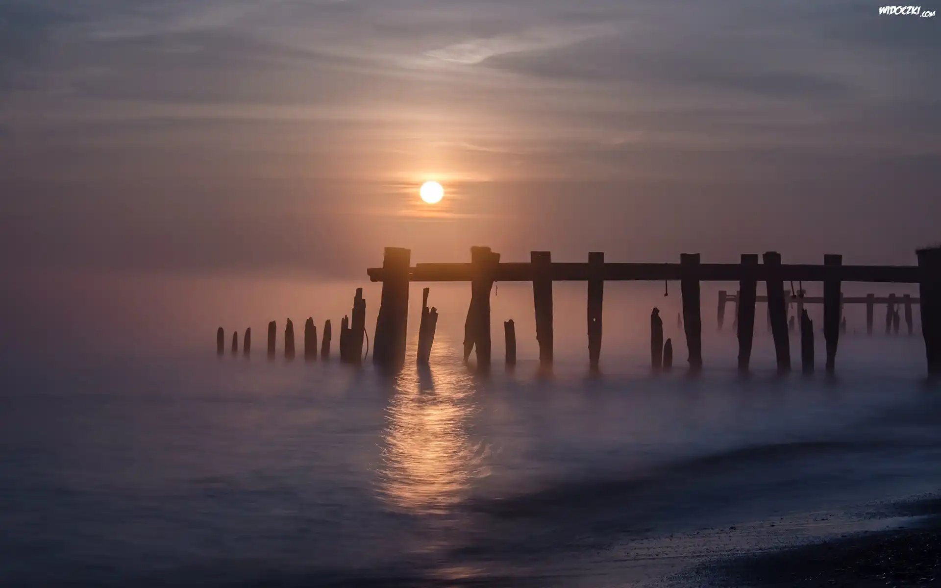Zdjęcia, Morze, Plaża, Pale, Zachód, Słońca