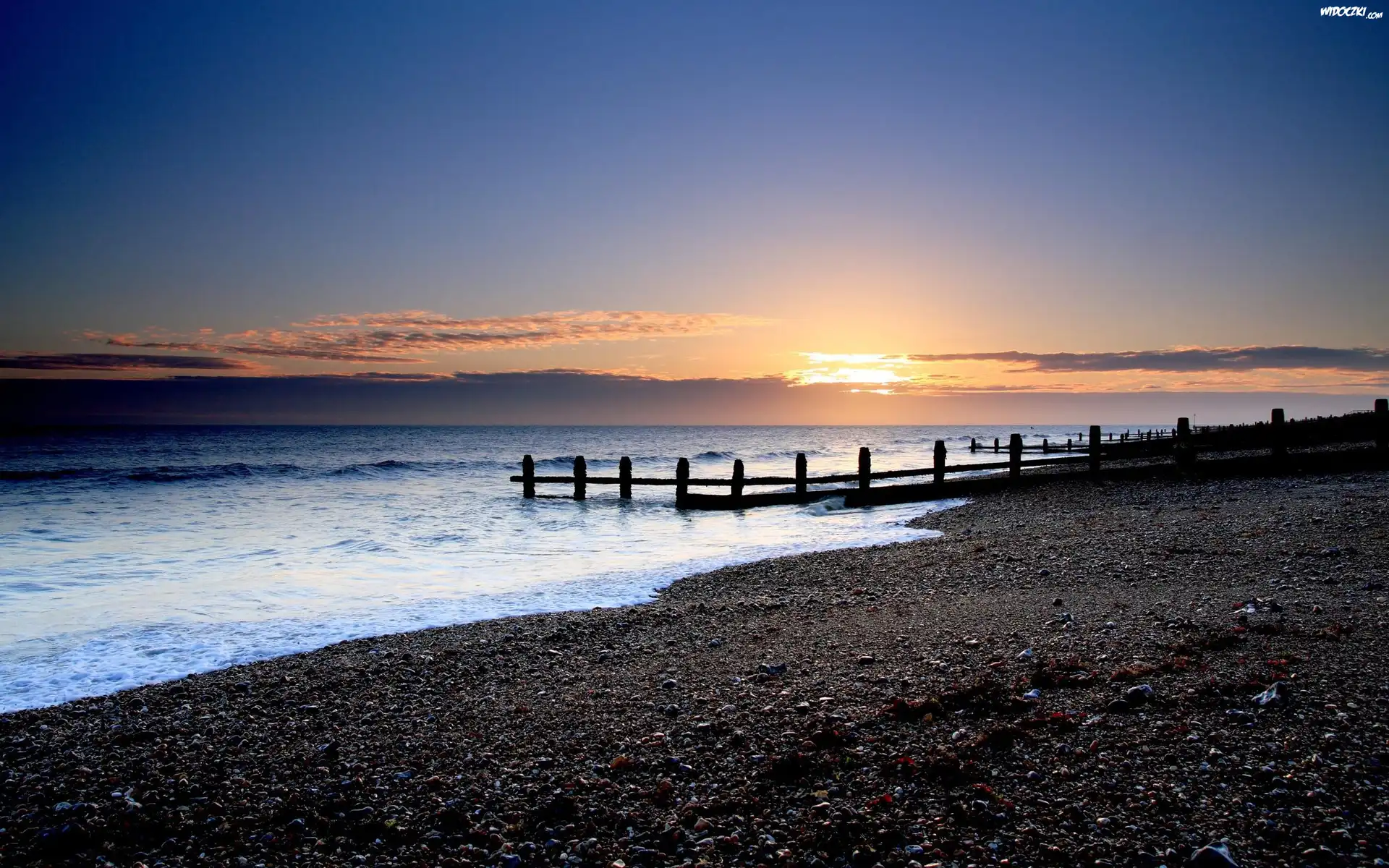 Zdjęcia, Morze, Pale, Zachód, Słońca