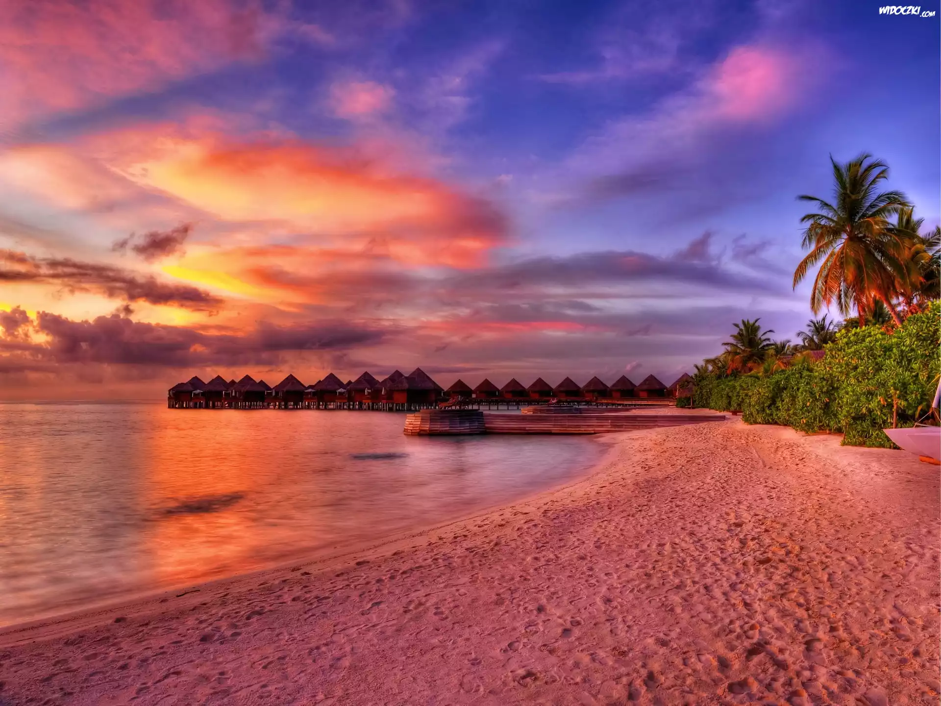 Zdjęcia, Morze, Plaża, Palma, Zachód, Słońca