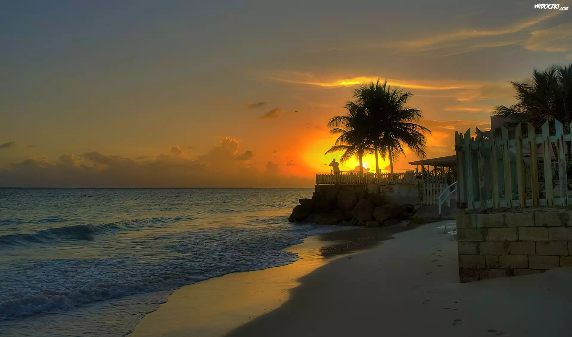 Morze, Palmy, Zachód Słońca