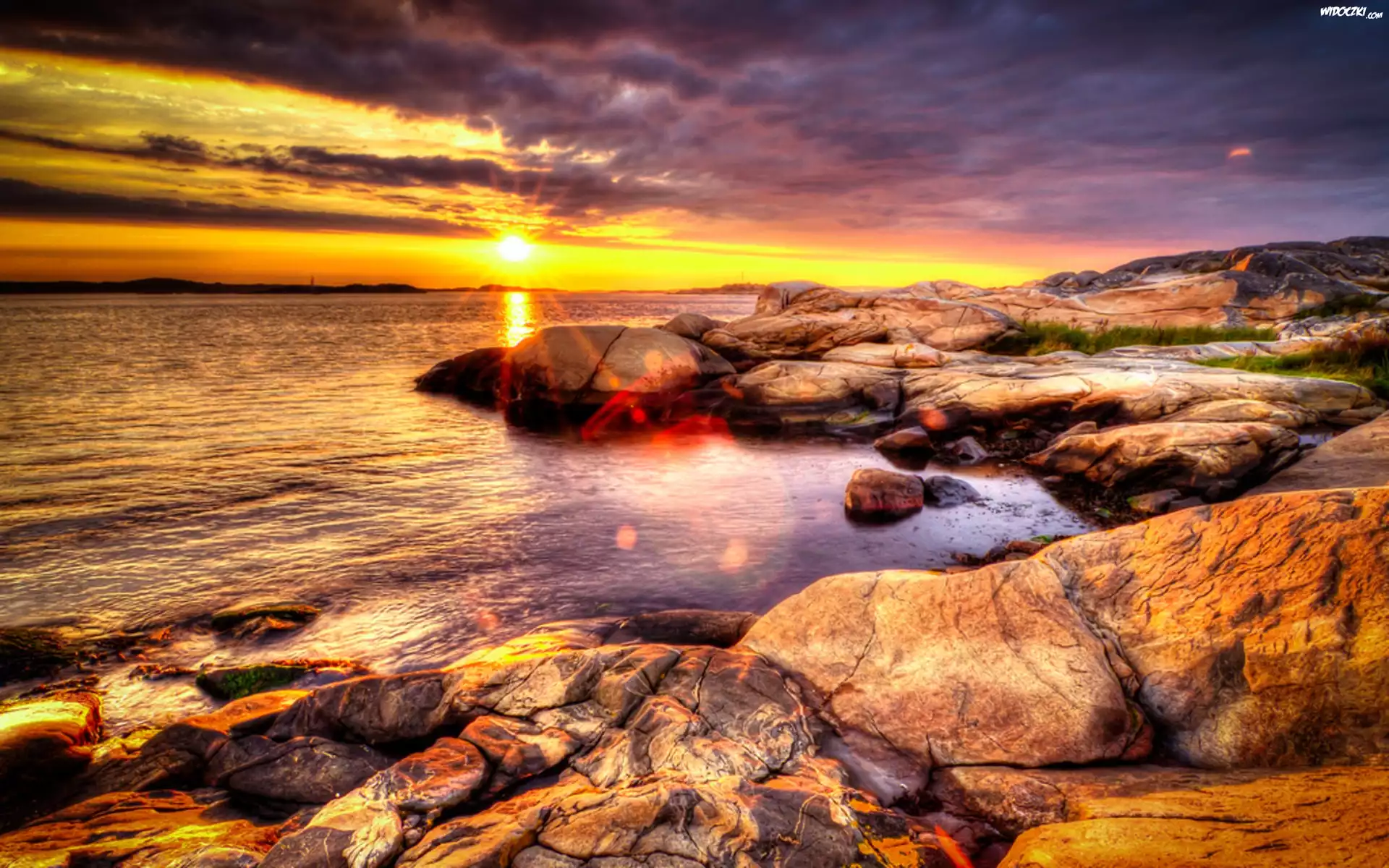 Zdjęcia, Morze, Skały, Piękny, Zachód, Słońca
