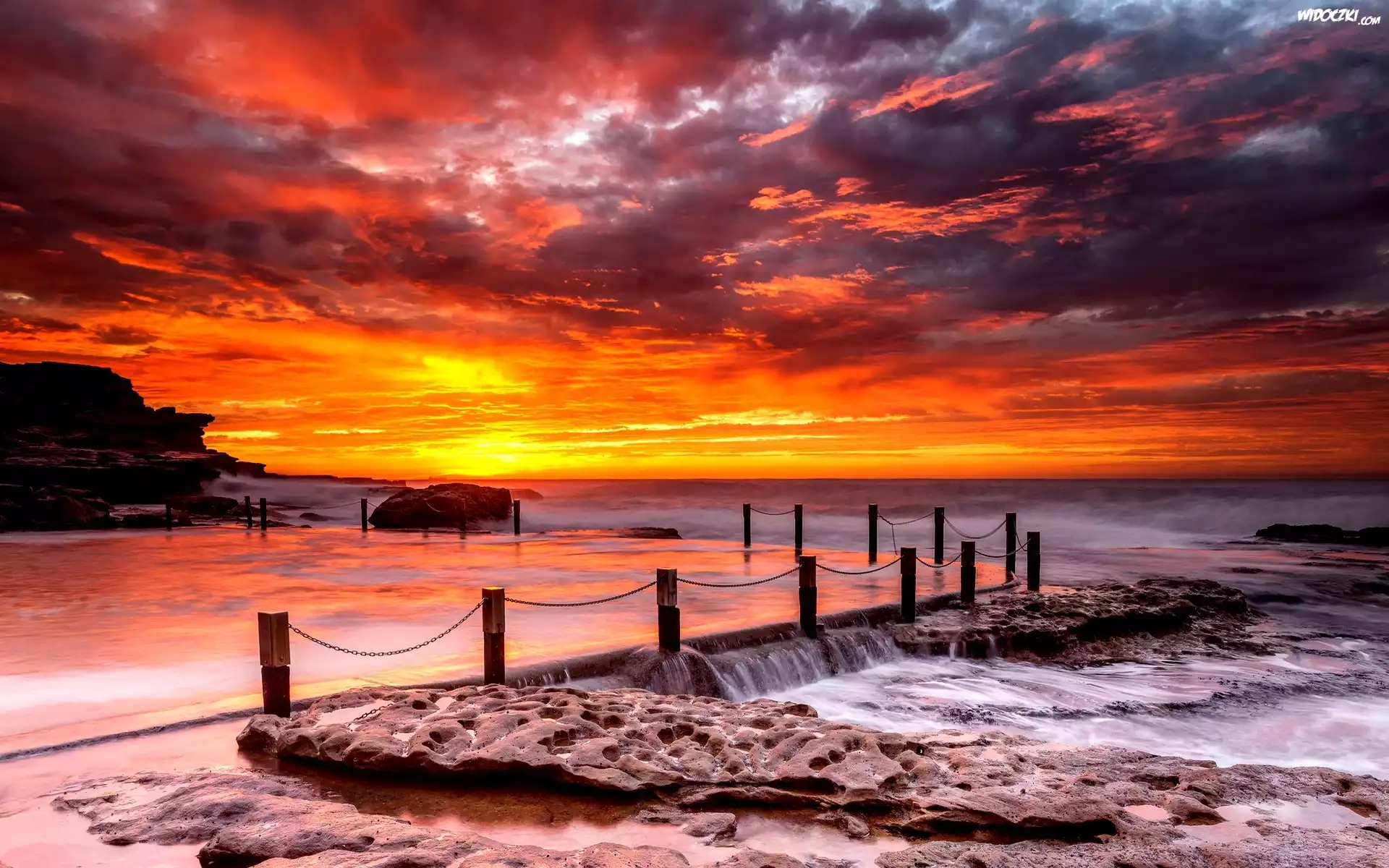 Zdjęcia, Morze, Plaża, Zachód, Słońca
