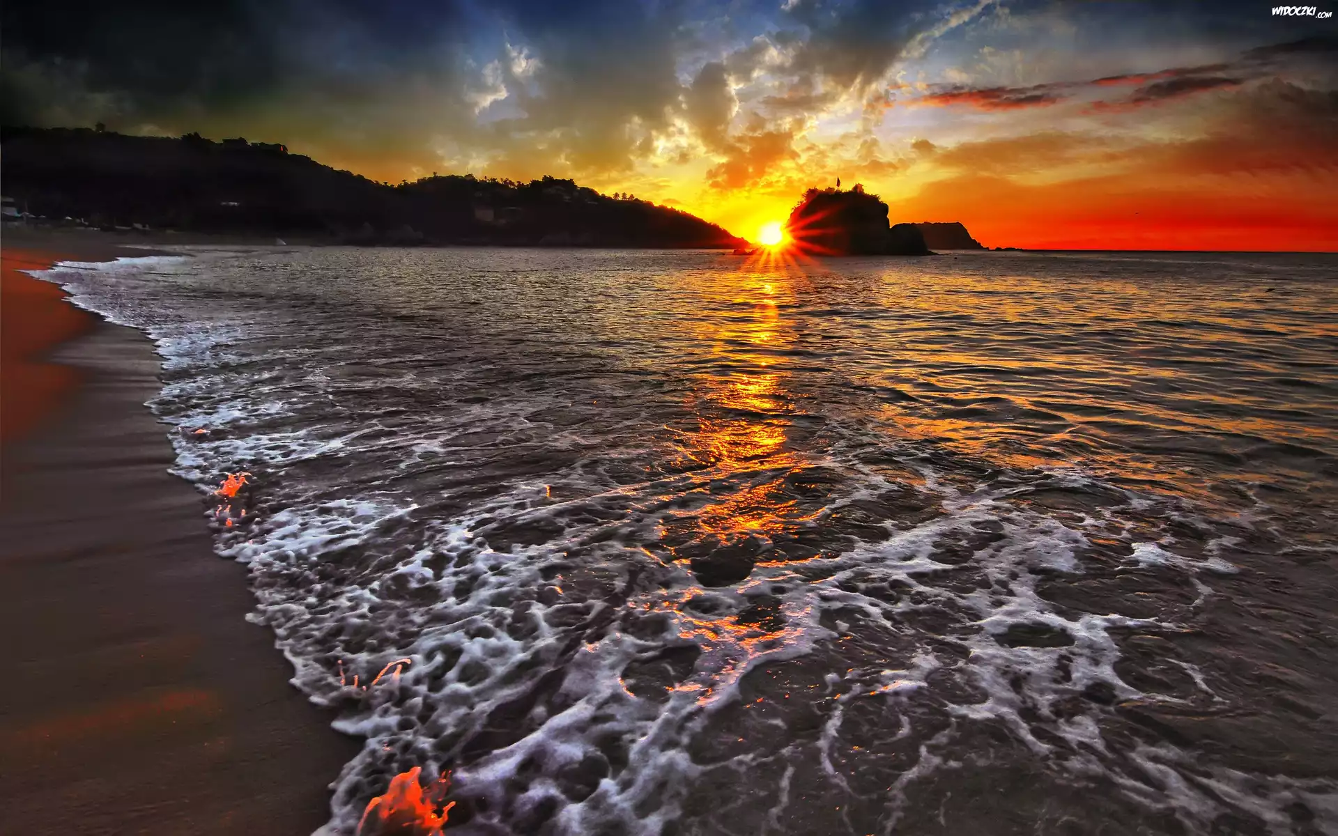 Morze, Plaża, Zachód, Słońca