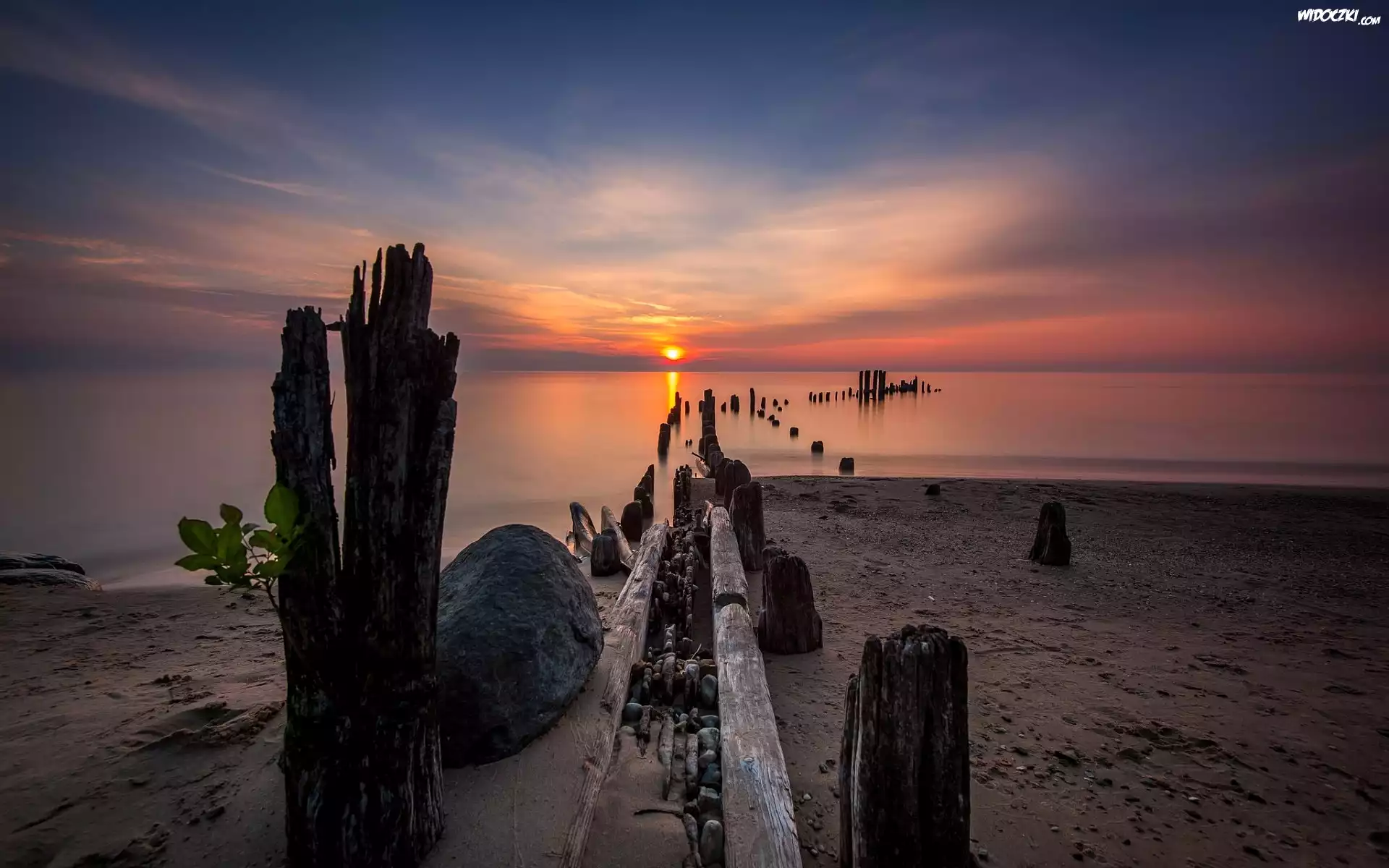 Zdjęcia, Morze, Plaża, Zachód Słońca