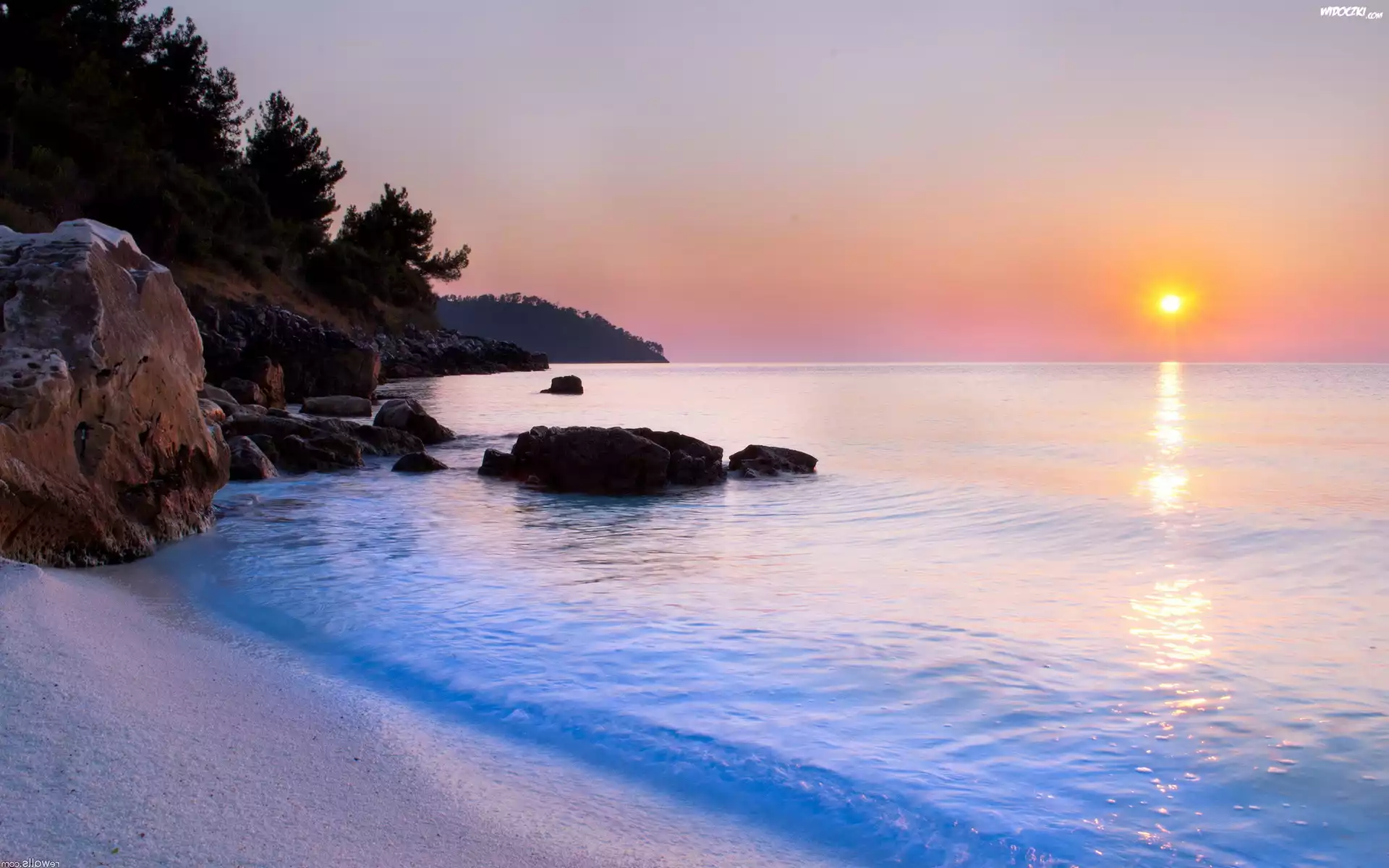 Zdjęcia, Morze, Plaża, Zachód, Słońca