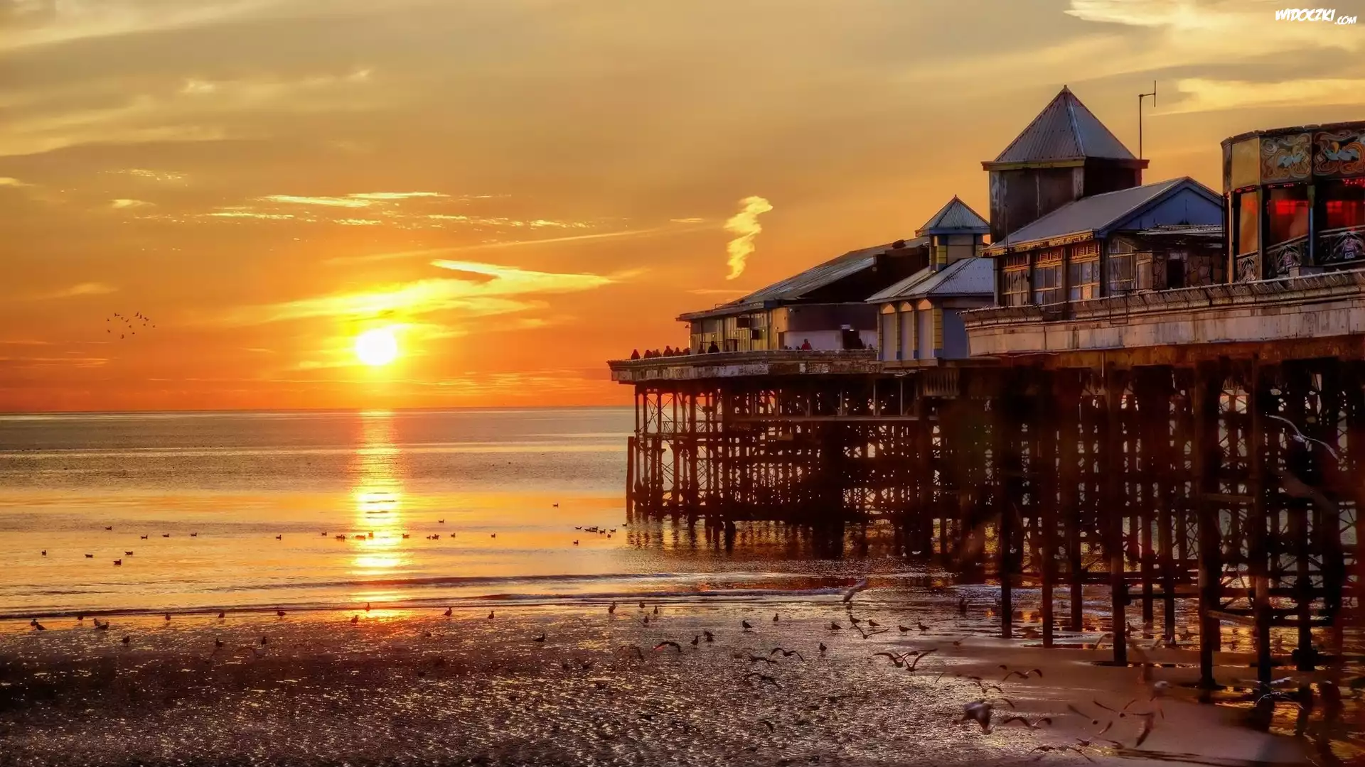Zdjęcia, Morze, Ptaki, Zachód, Słońca