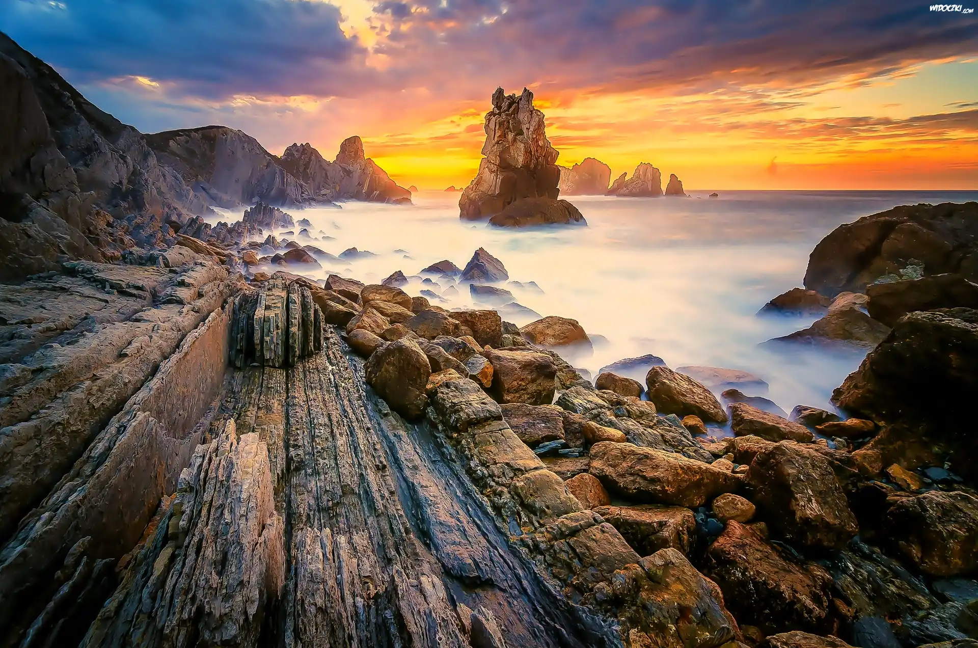 Zdjęcia, Morze, Skały, Zachód, Słońca