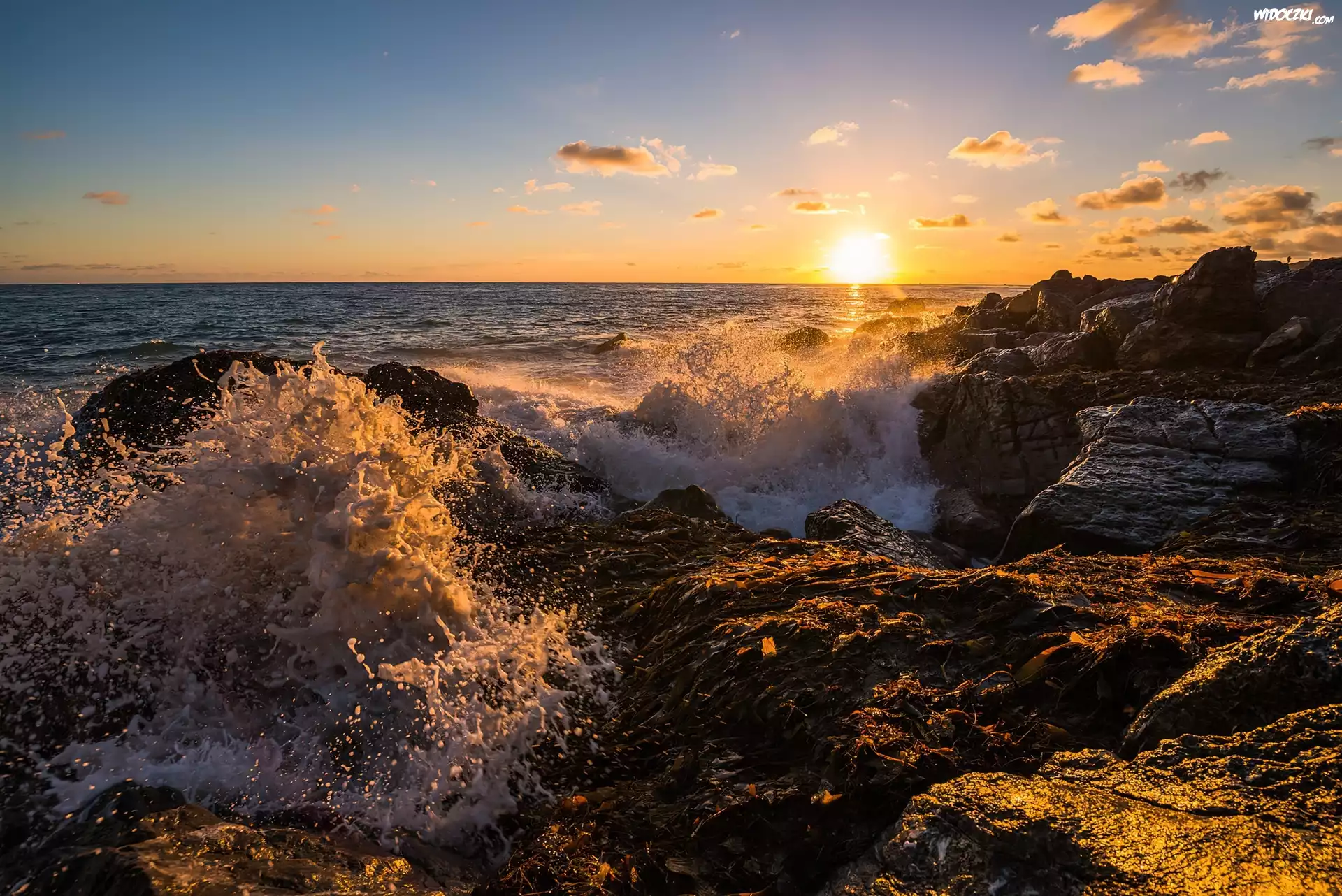 Zdjęcia, Morze, Skały, Zachód Słońca