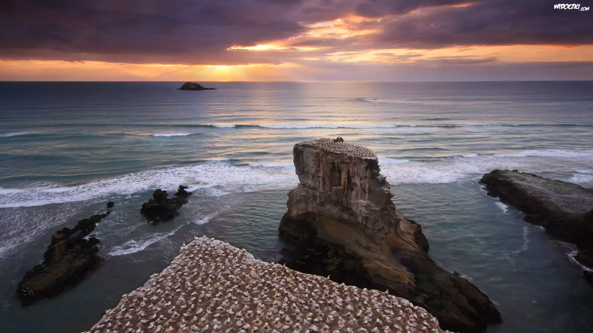 Zdjęcia, Morze, Skały, Zachód, Słońca
