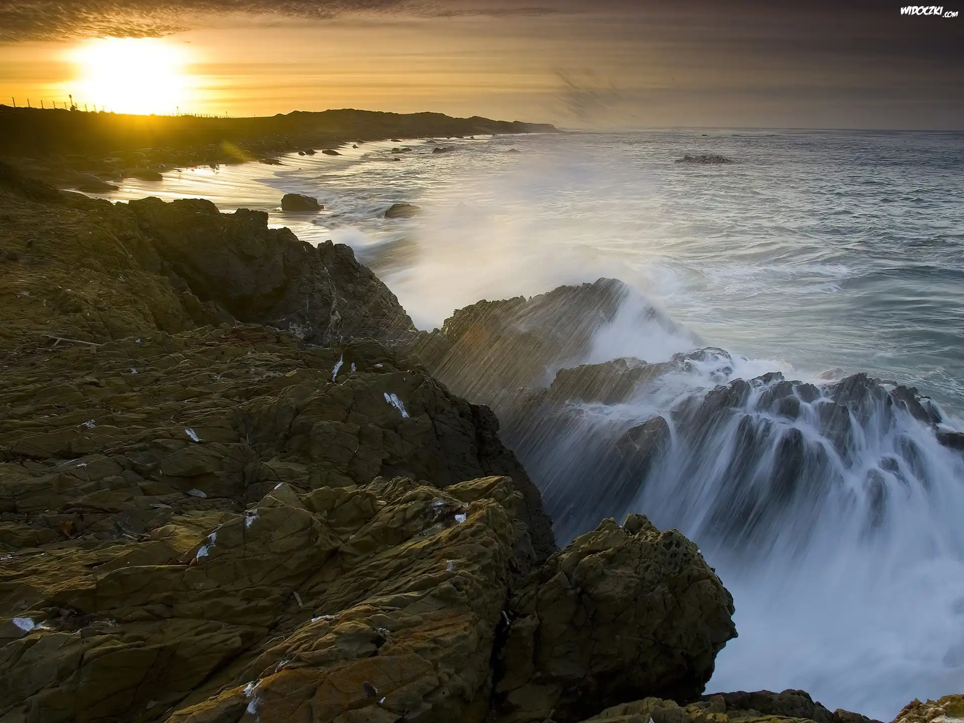 Zdjęcia, Morze, Skały, Zachód Słońca