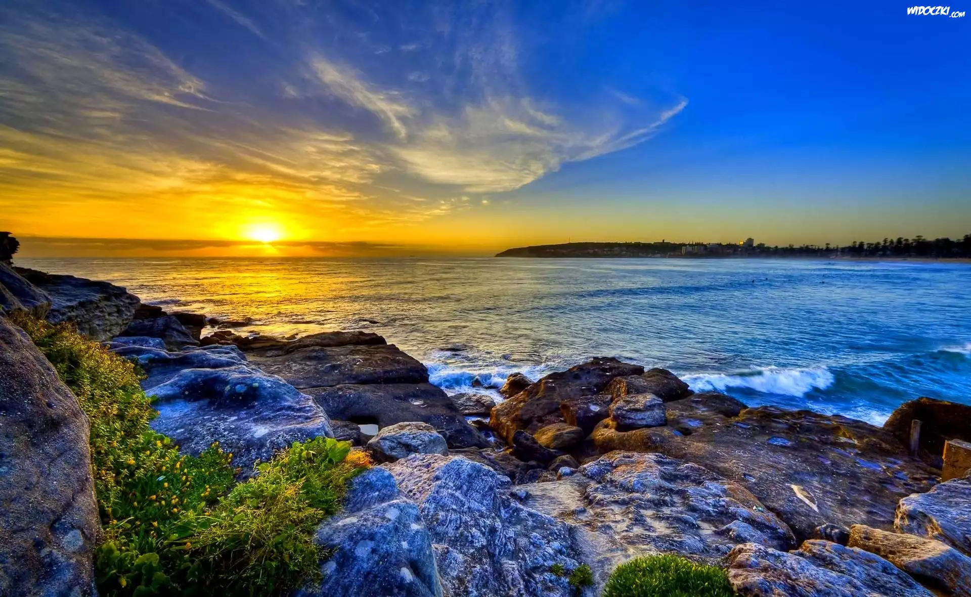 Zdjęcia, Morze, Skały, Zachód Słońca