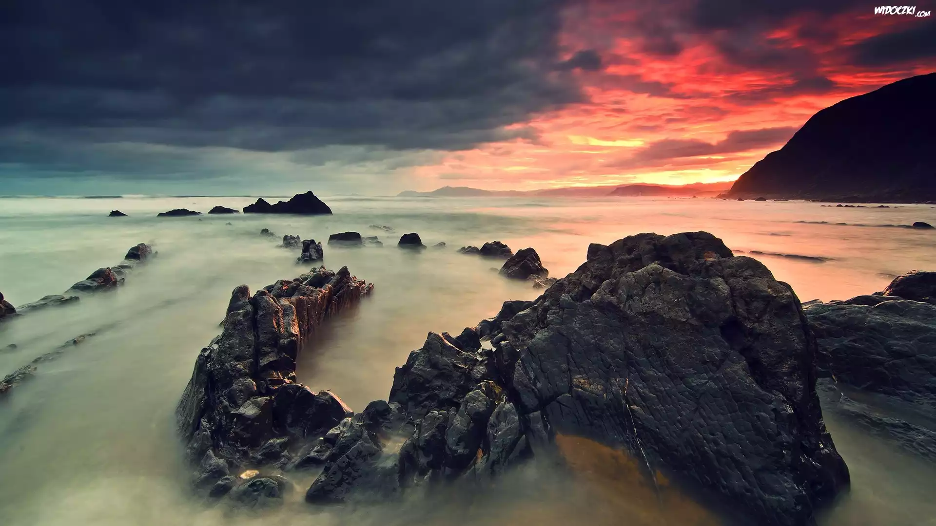Zdjęcia, Morze, Skały, Zachód Słońca
