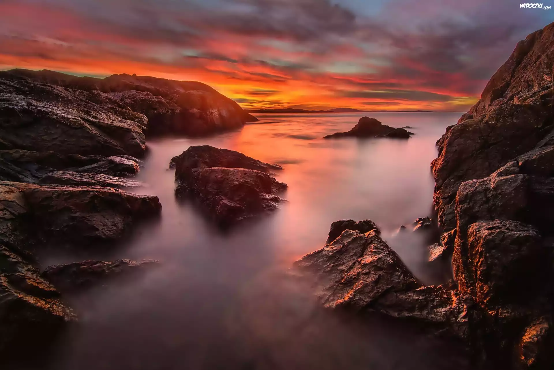 Zdjęcia, Morze, Skały, Zachód Słońca