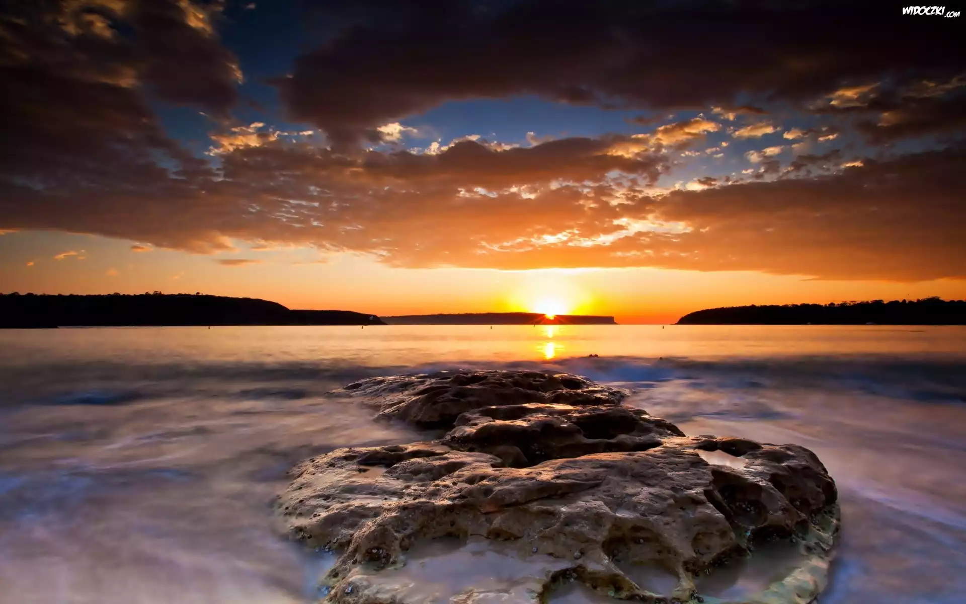 Zdjęcia, Morze, Skały, Zachód, Słońca