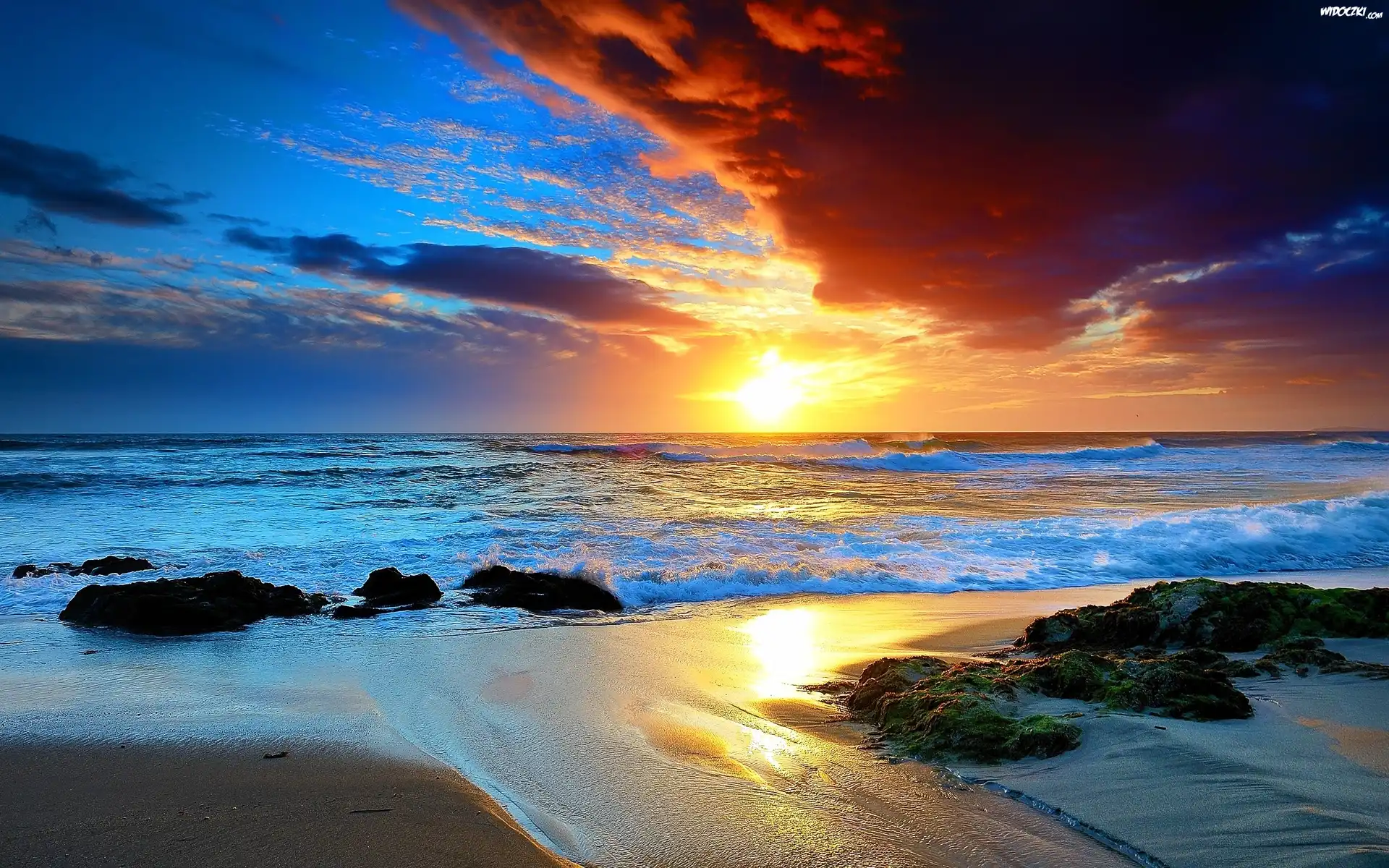 Zdjęcia, Morze, Skały, Zachód Słońca