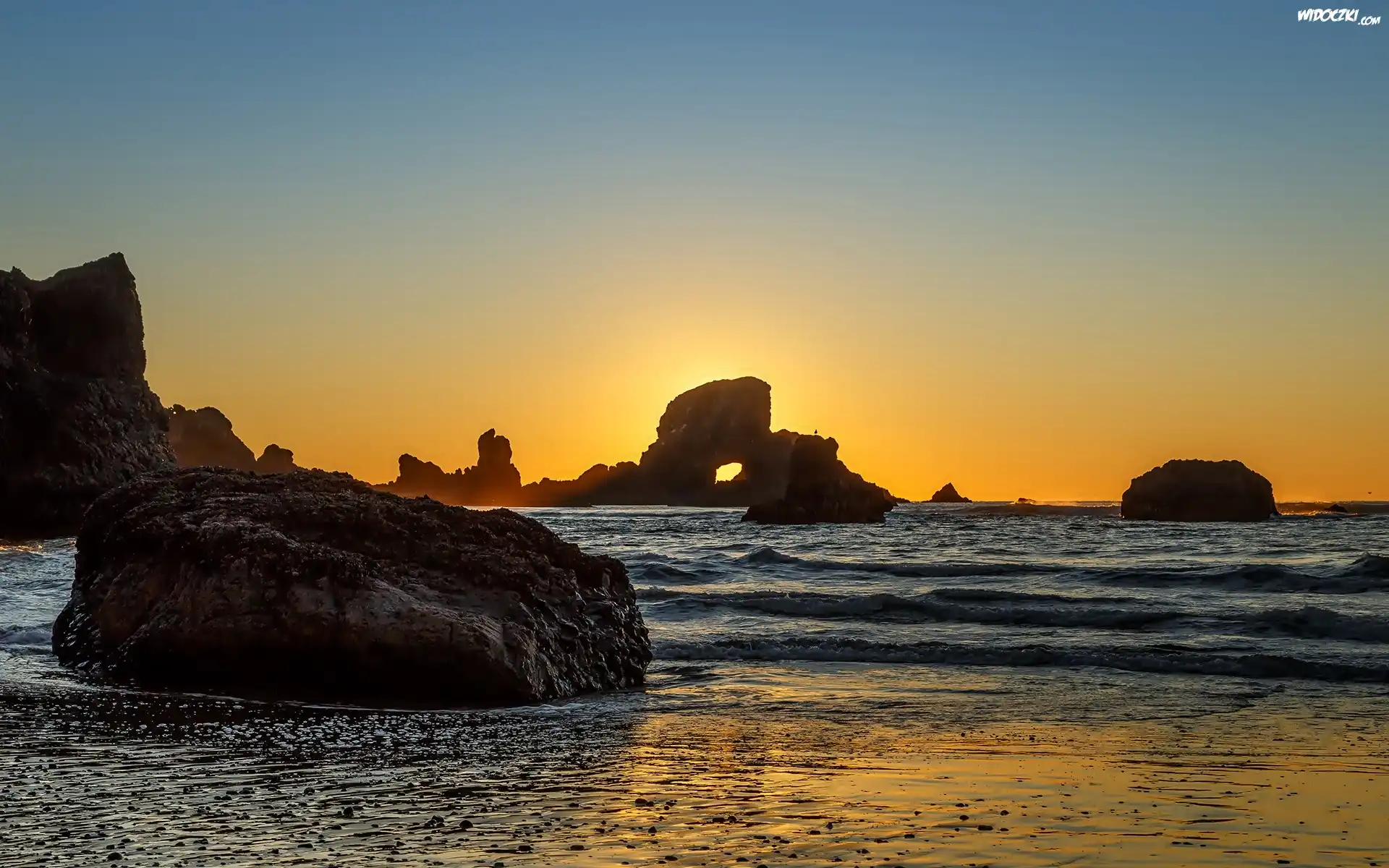 Zdjęcia, Morze, Skały, Zachód, Słońca