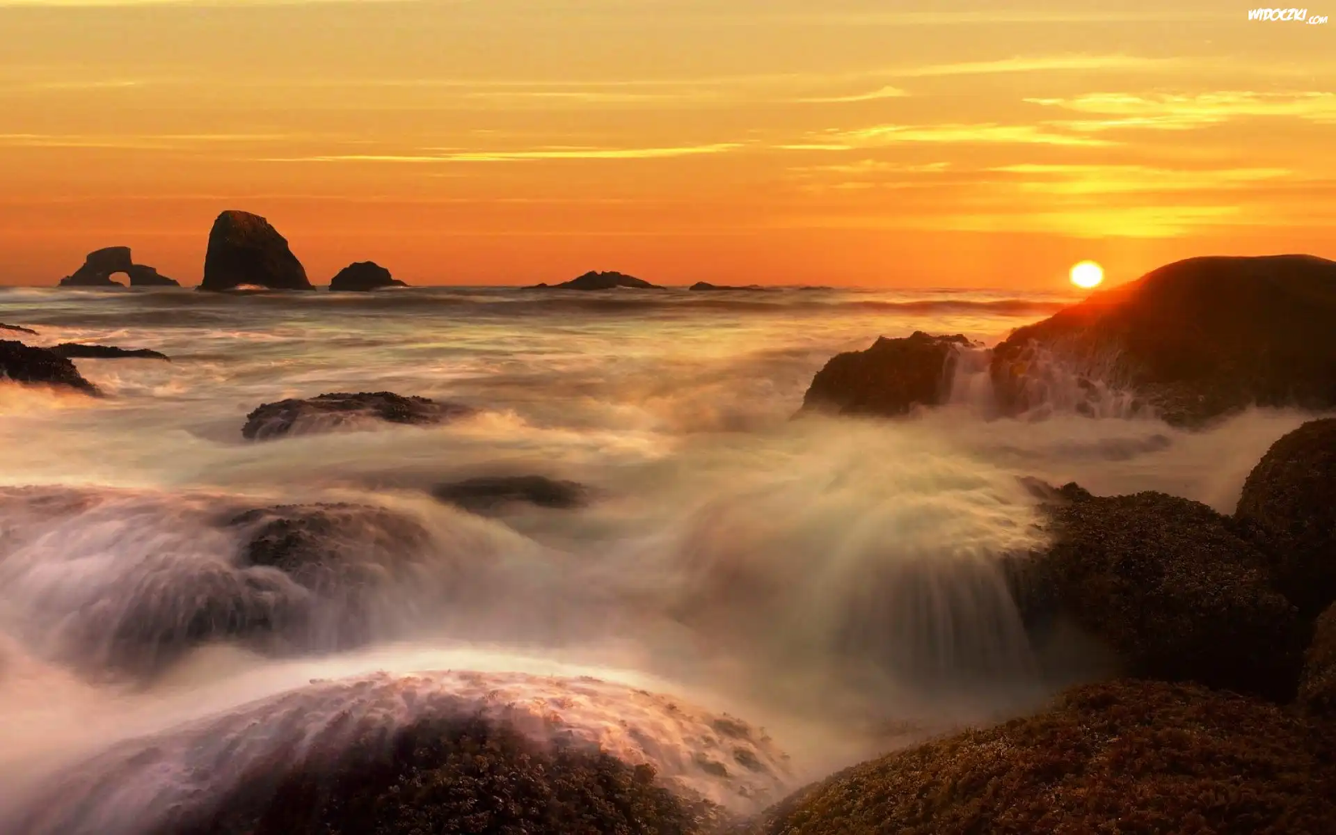 Zdjęcia, Morze, Skały, Zachód Słońca