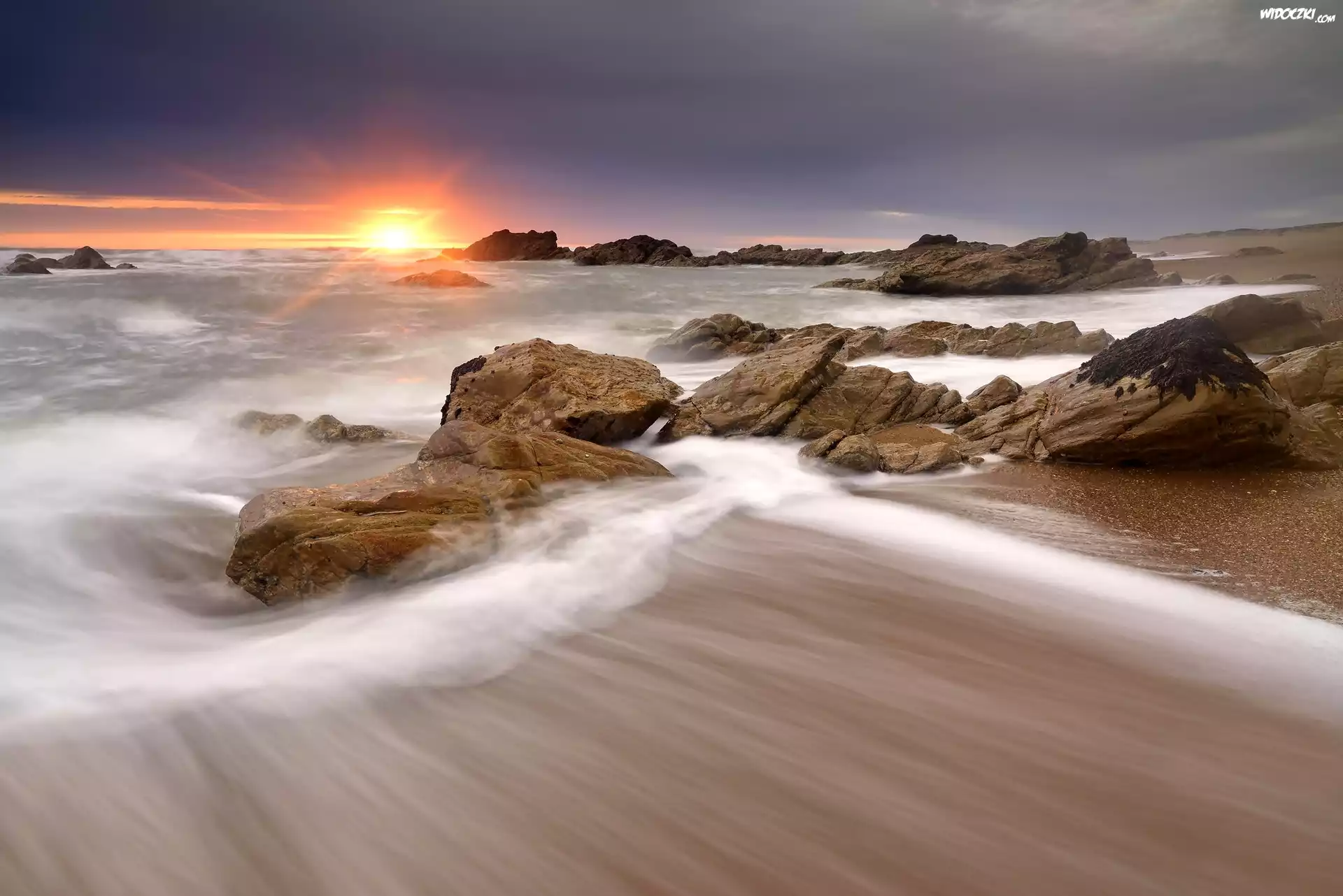 Zdjęcia, Morze, Skały, Zachód, Słońca