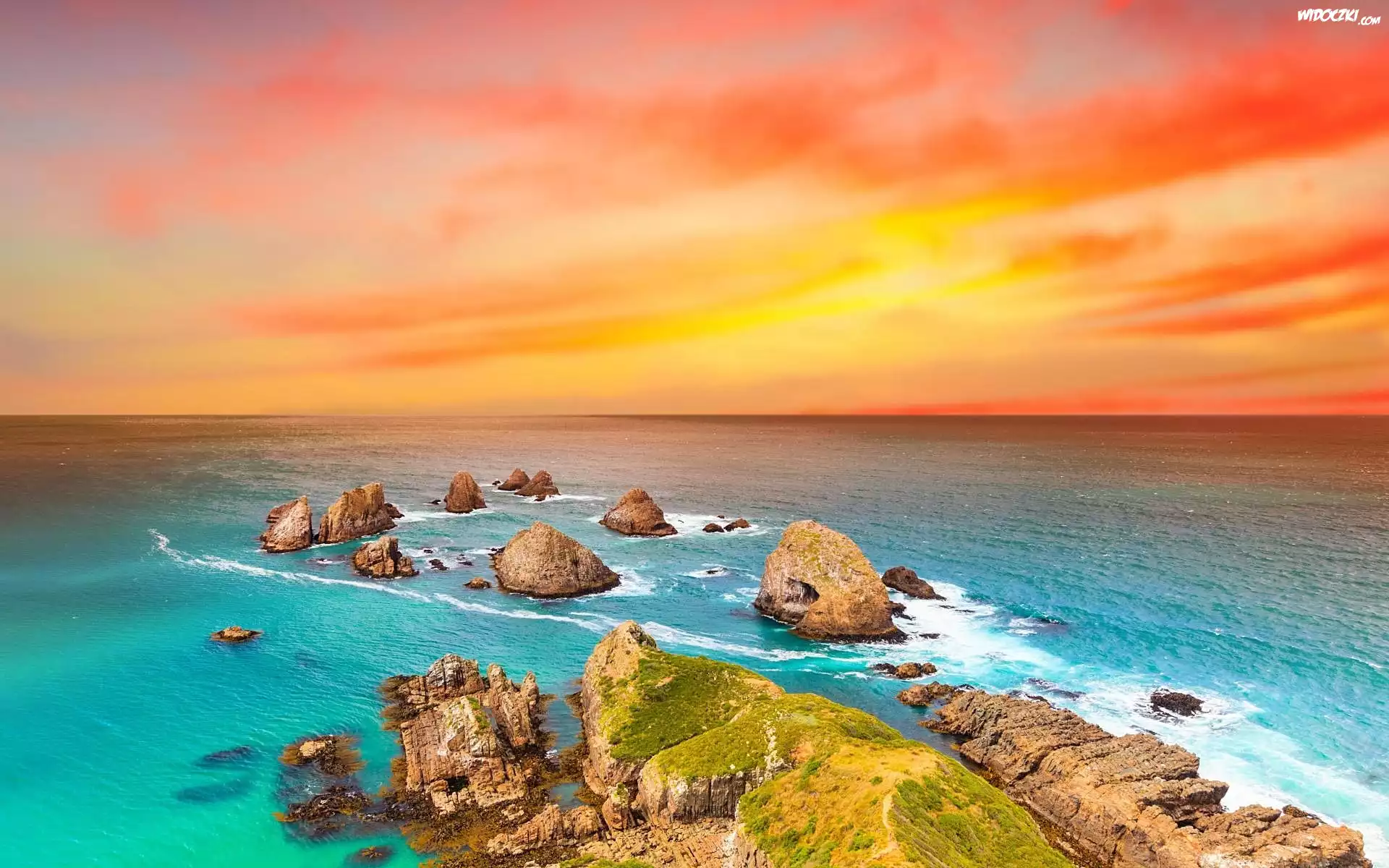 Zdjęcia, Morze, Skały, Zachód Słońca