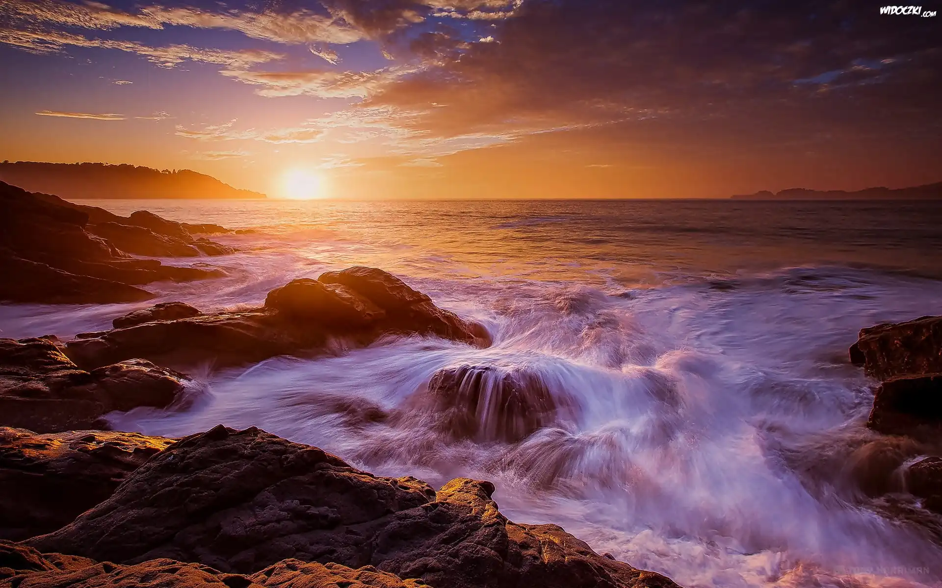 Zdjęcia, Morze, Wybrzeże, Skały, Zachód, Słońca