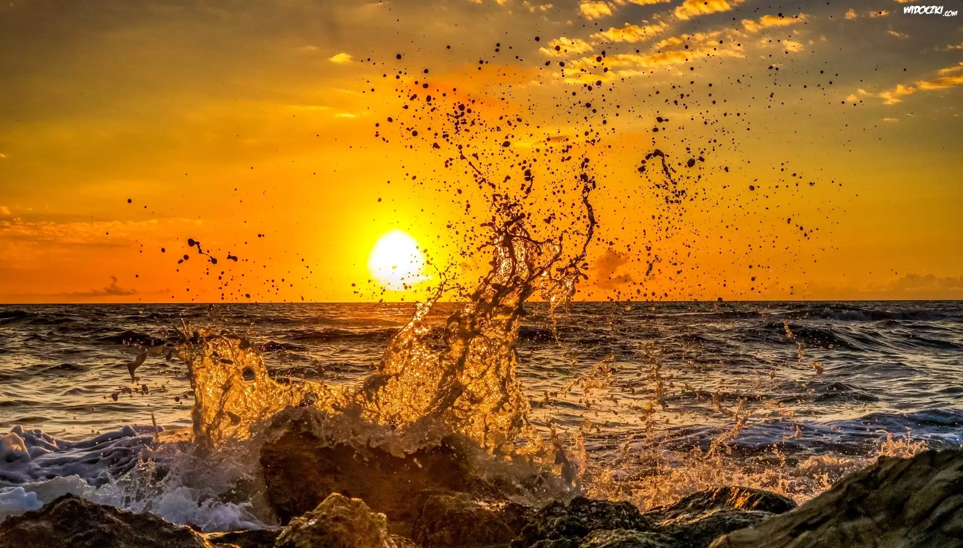 Zdjęcia, Morze, Rozbryzgująca, Woda, Zachód, Słońca