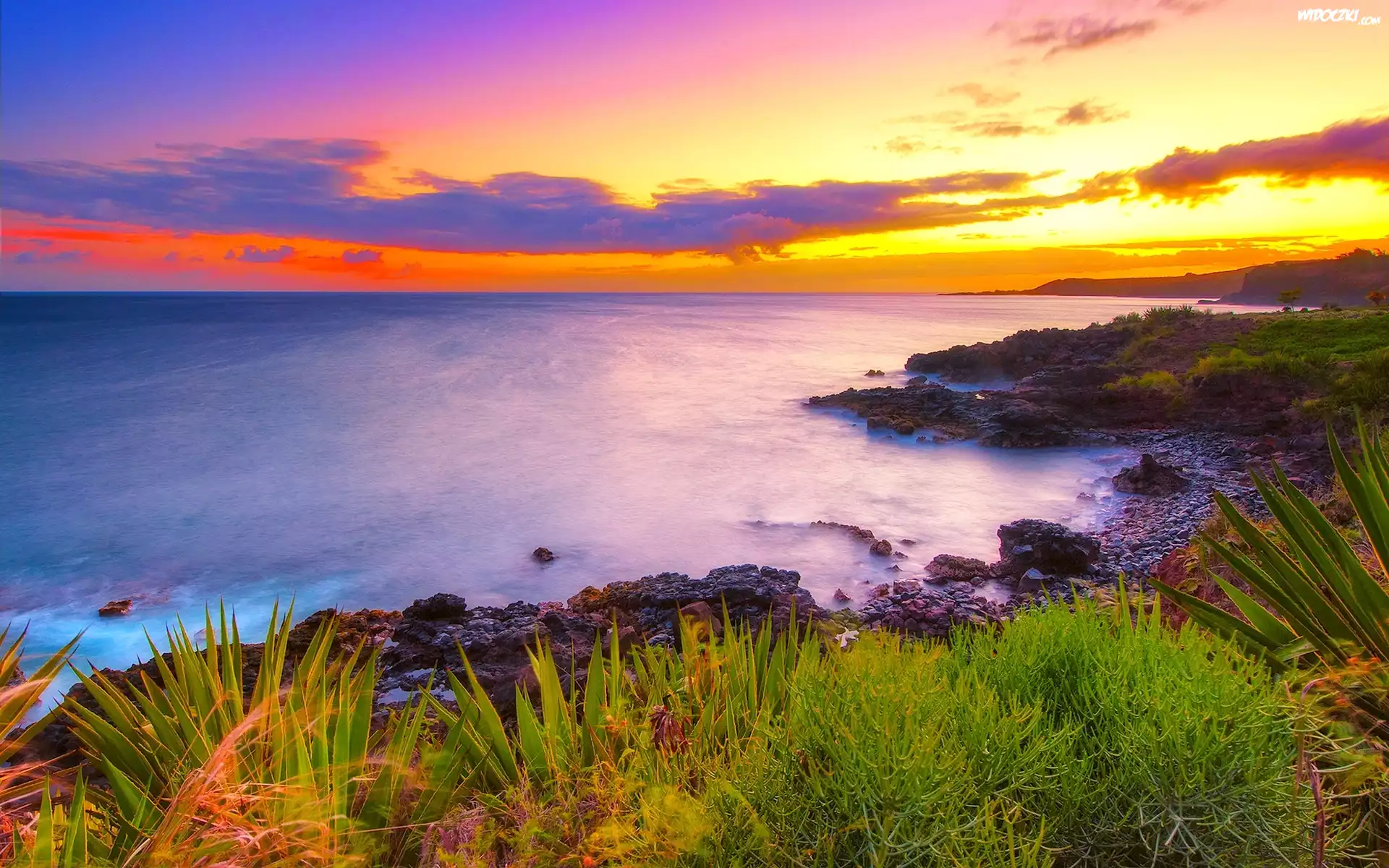 Morze, Wybrzeże, Zachód Słońca