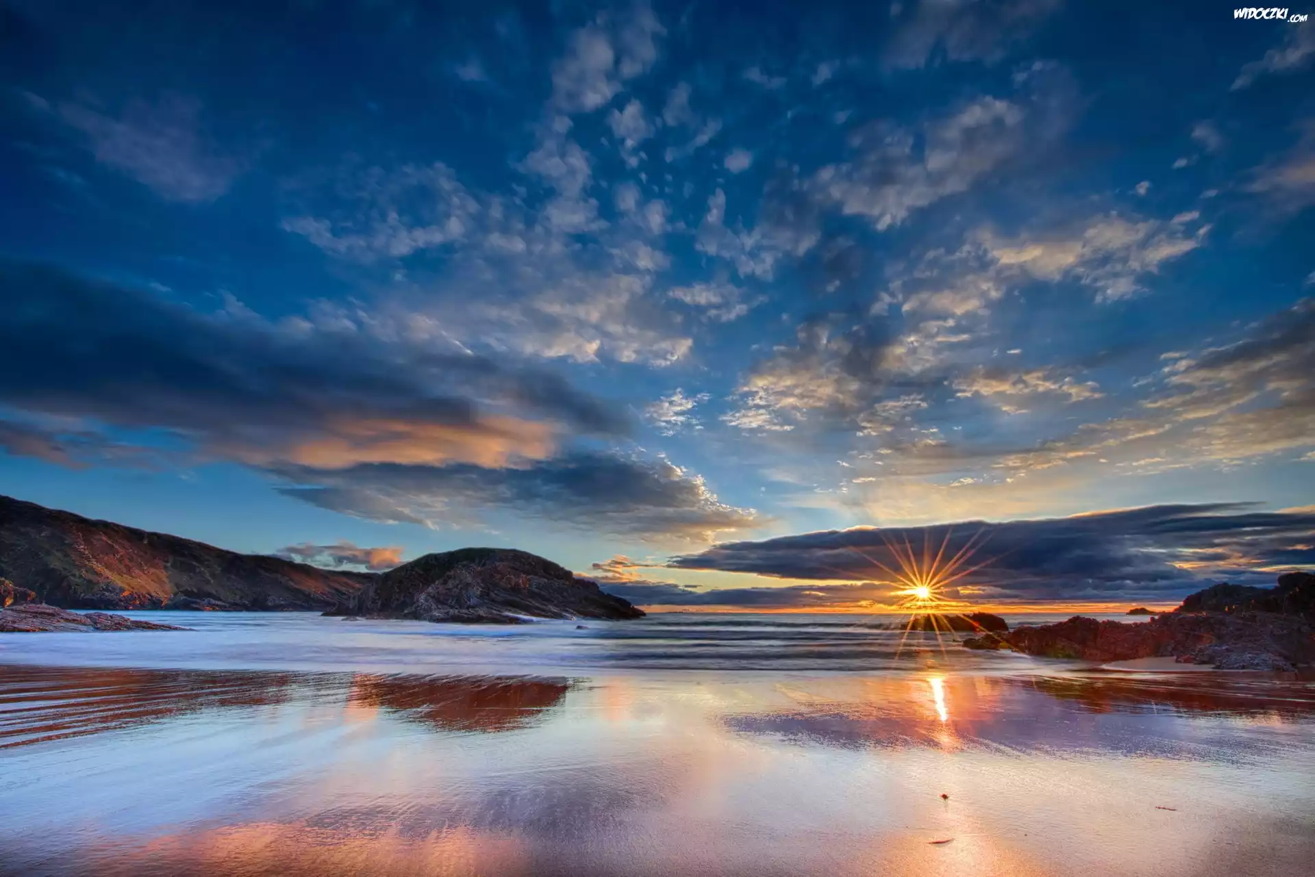 Zdjęcia, Morze, Wybrzeże, Zachód Słońca