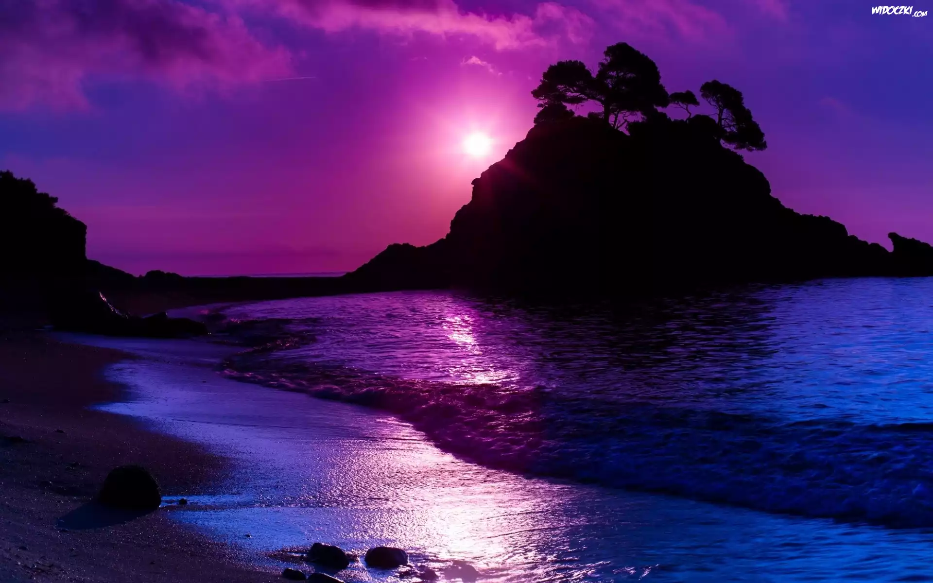 Morze, Wyspa, Zachód, Słońca