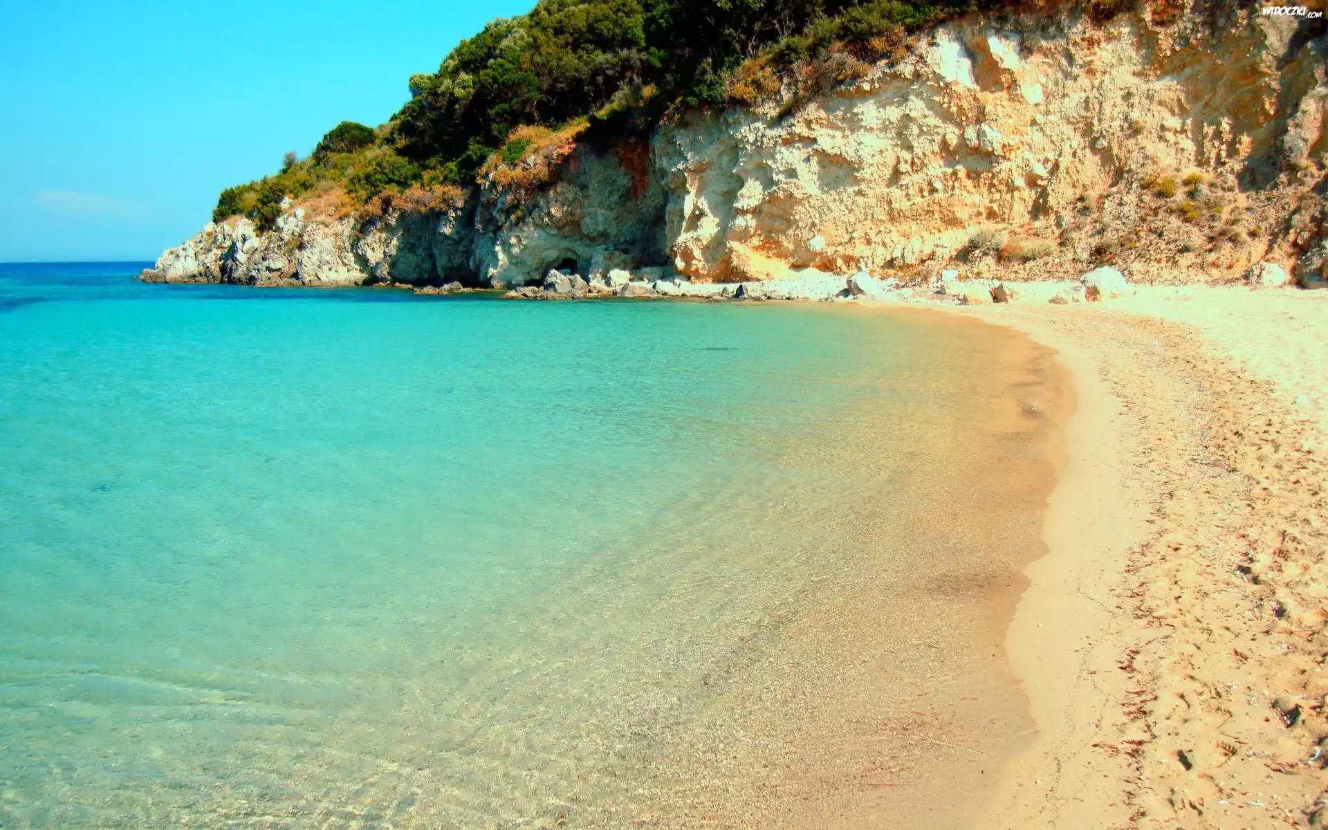 Morze, Plaża, Skały, Zakynthos, Grecja